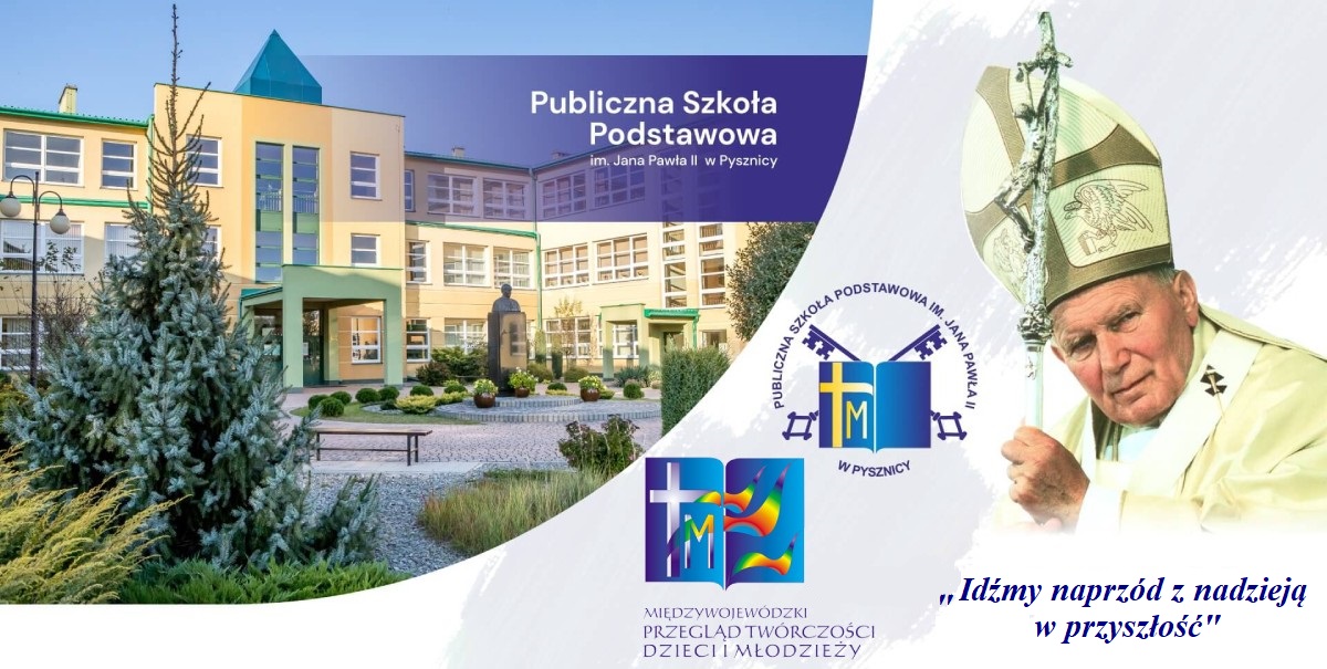 Zapraszamy do udziału w XXII edycji Międzywojewódzkiego Przeglądu Twórczości Dzieci i Młodzieży Szkół Noszących Imię Jana Pawła II podhasłem „Idźmy naprzód z nadzieją w przyszłość”.
