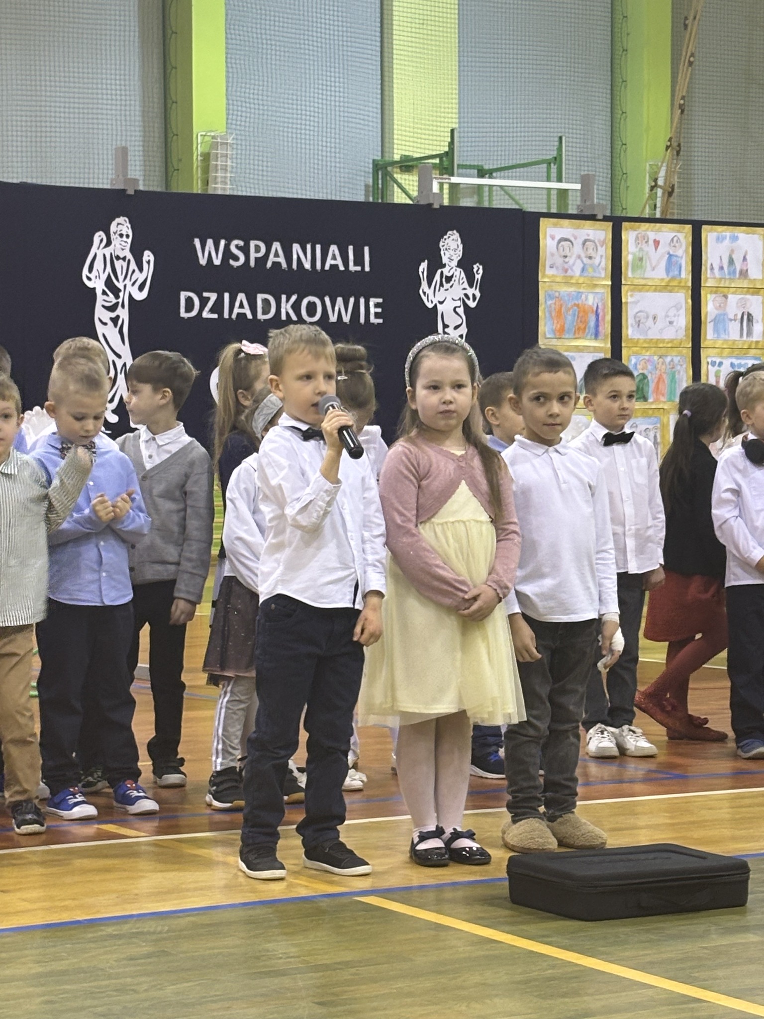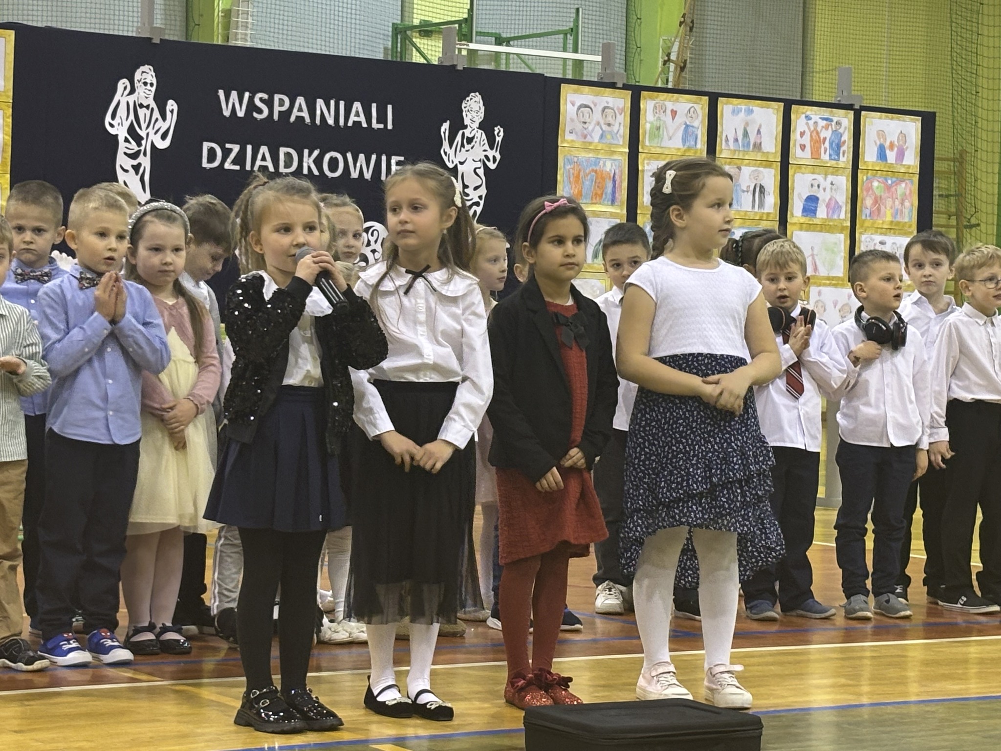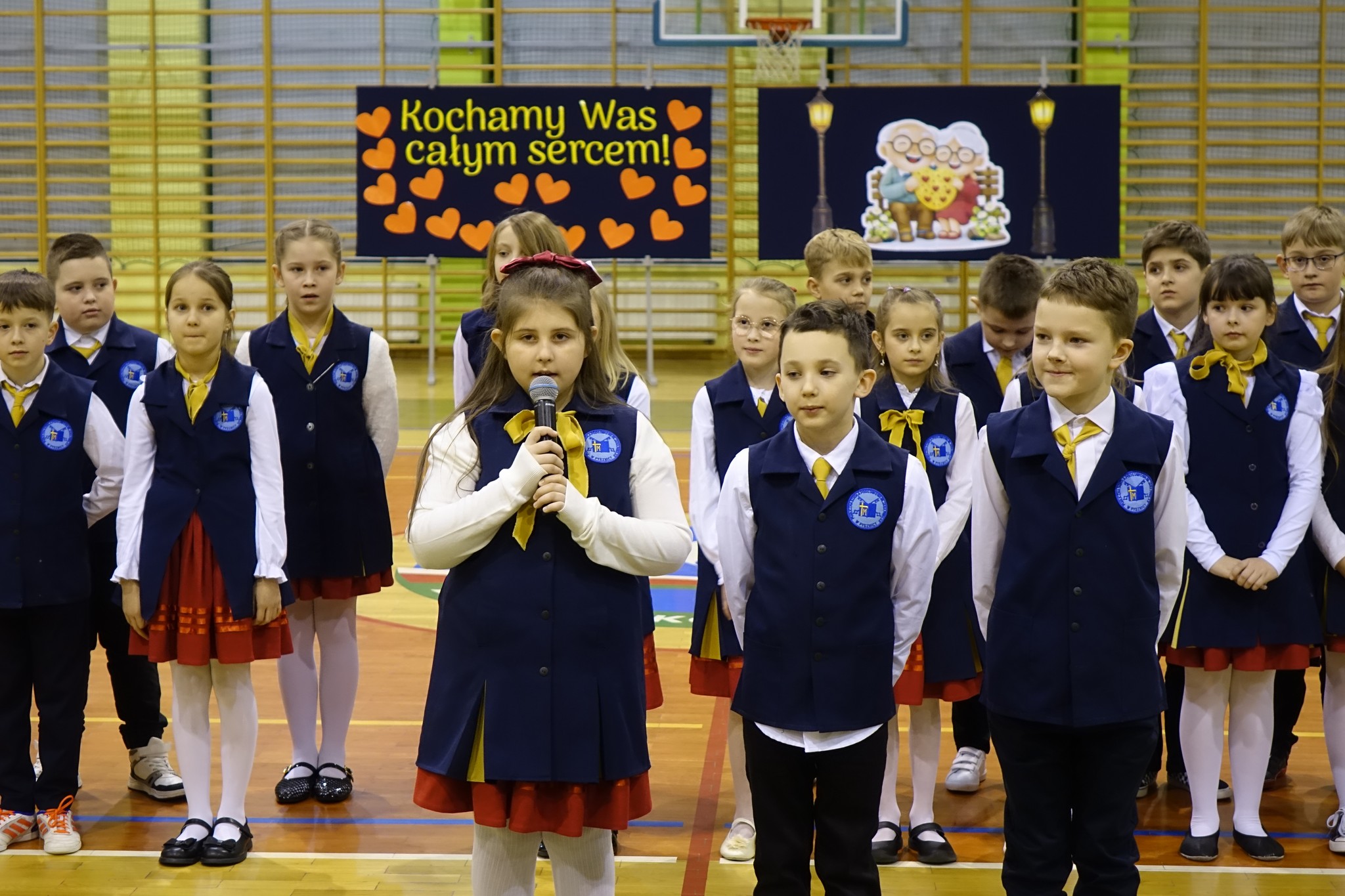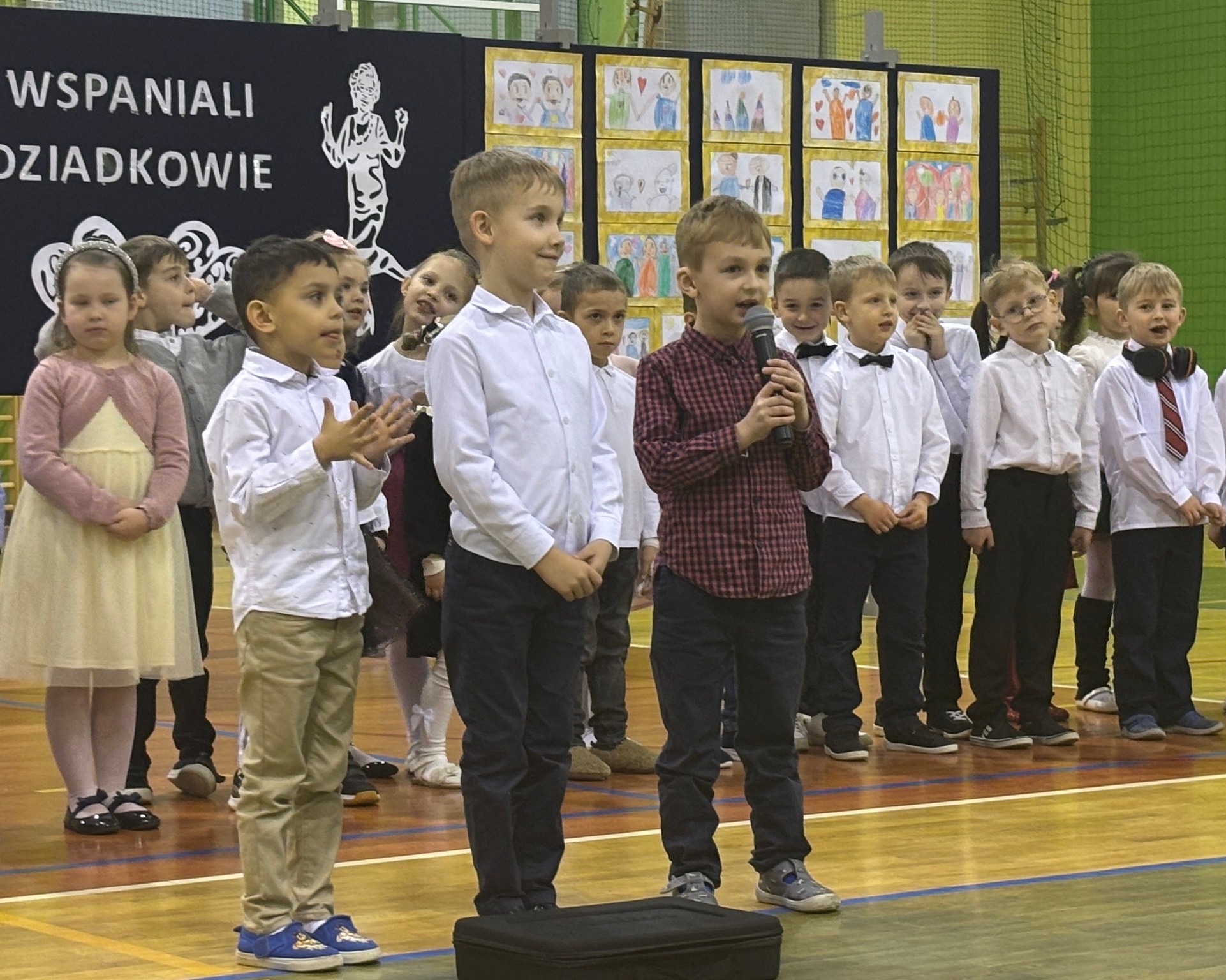 Z kolei 22 stycznia uczniowie klas pierwszych zaprezentowali część artystyczną z okazji Dnia Babci i Dziadka. Występ był zwieńczeniem kilkutygodniowych przygotowań, podczas których uczniowie z dużym zaangażowaniem uczyli się układów tanecznych, wierszy oraz piosenek. Recytowane przez uczniów wiersze wyrażały wdzięczność, miłość oraz szacunek wobec Babć i Dziadków. Występy taneczne były starannie przygotowane, a uczniowie z dużym zaangażowaniem i radością prezentowali wcześniej wyuczone układy choreograficzne. Śpiewane piosenki, dostosowane do wieku wykonawców, wprowadziły ciepłą i wzruszającą atmosferę, podkreślając uroczysty charakter spotkania.