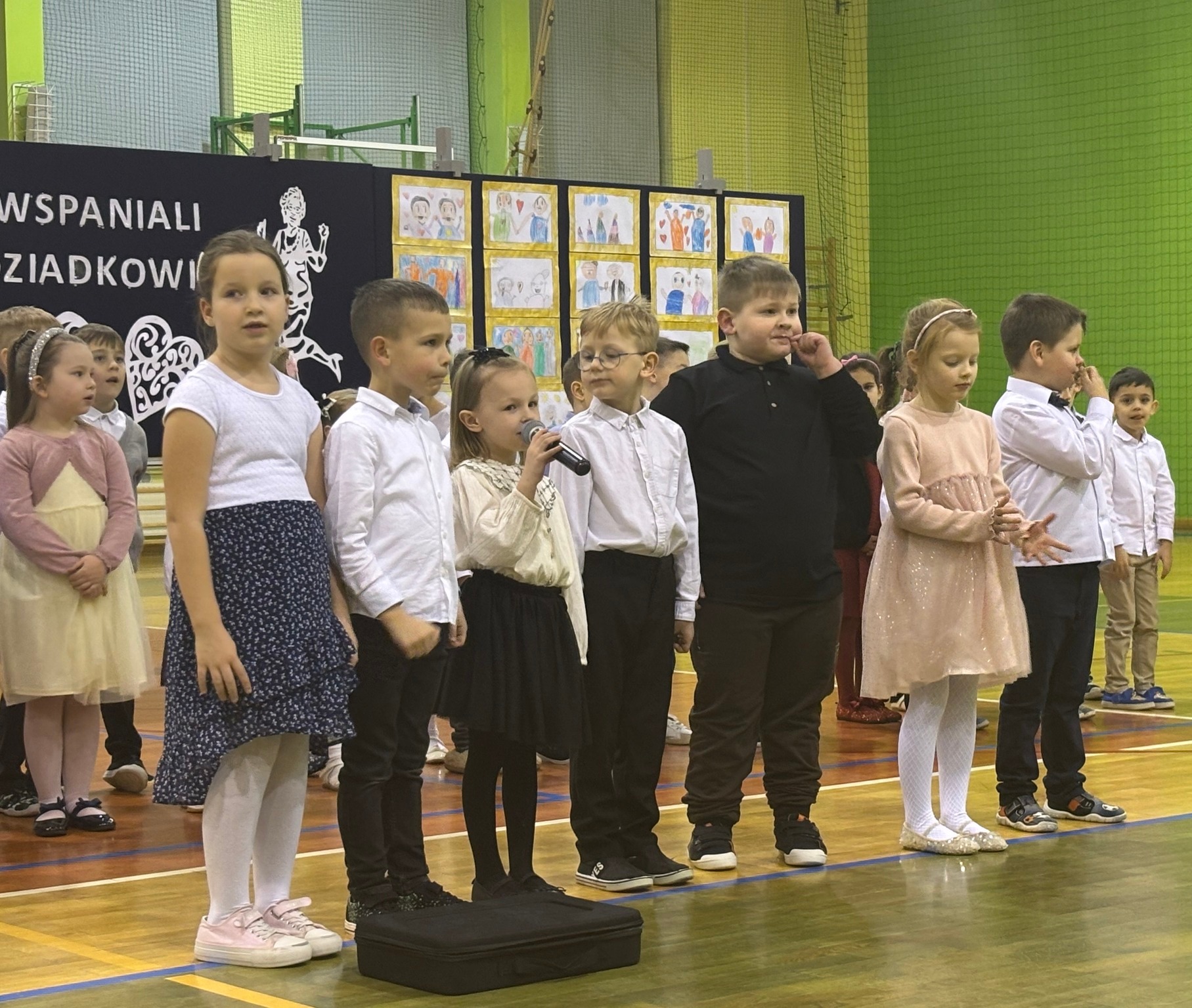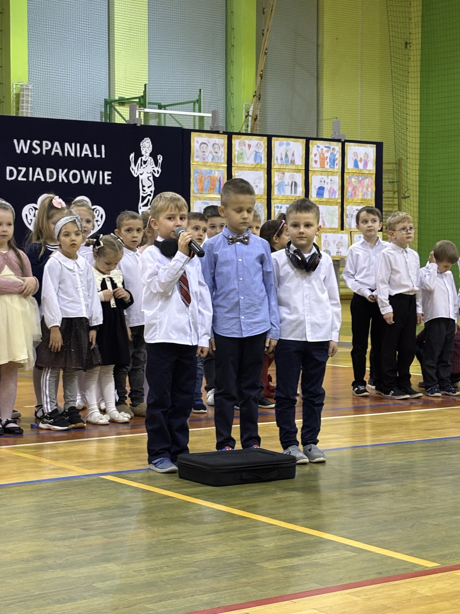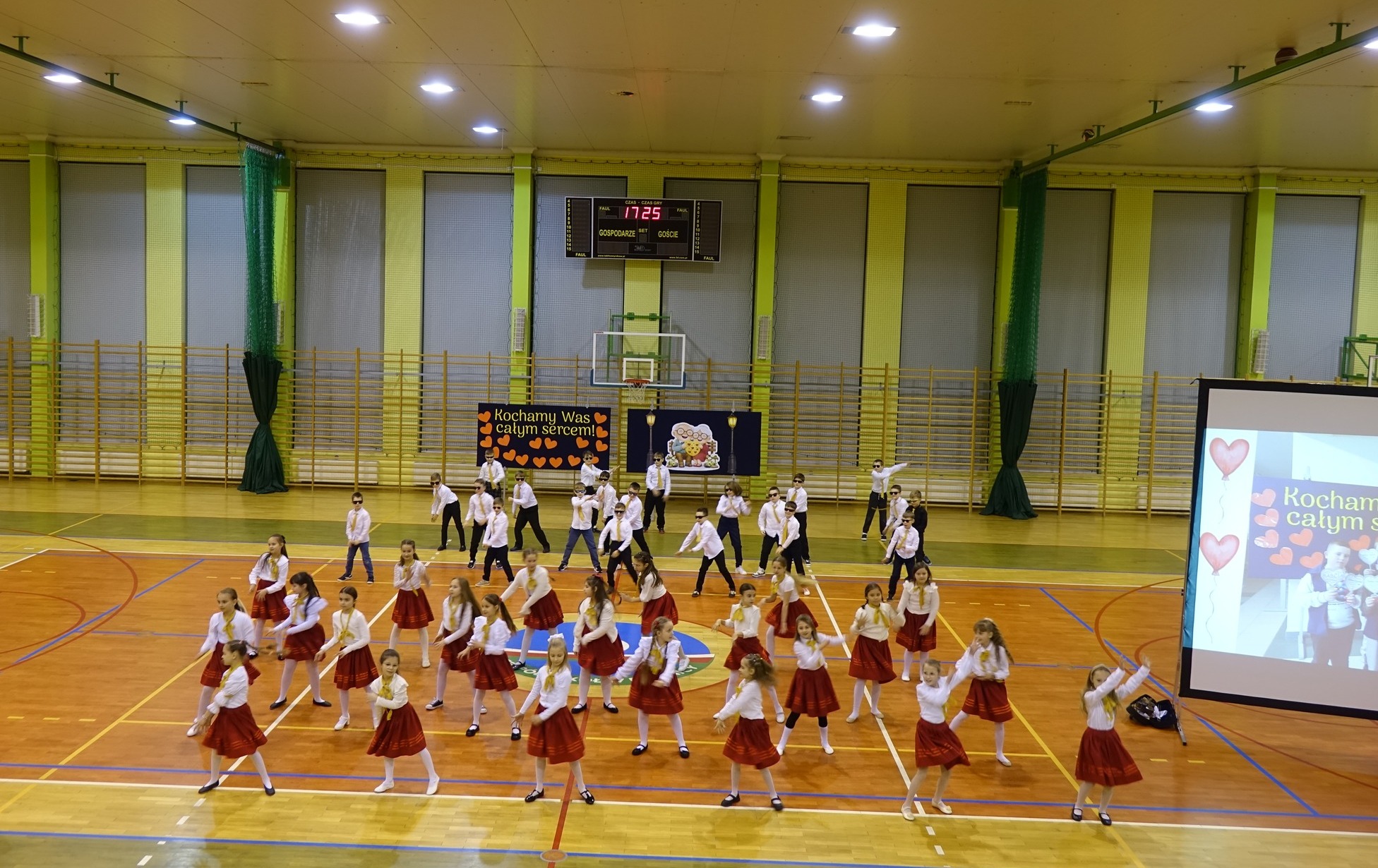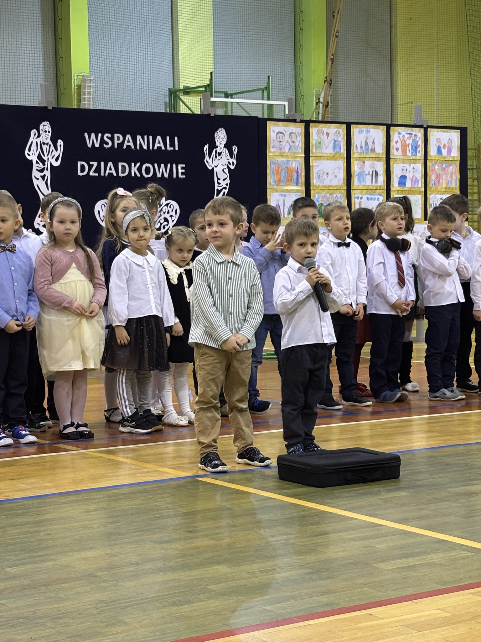 Z kolei 22 stycznia uczniowie klas pierwszych zaprezentowali część artystyczną z okazji Dnia Babci i Dziadka. Występ był zwieńczeniem kilkutygodniowych przygotowań, podczas których uczniowie z dużym zaangażowaniem uczyli się układów tanecznych, wierszy oraz piosenek. Recytowane przez uczniów wiersze wyrażały wdzięczność, miłość oraz szacunek wobec Babć i Dziadków. Występy taneczne były starannie przygotowane, a uczniowie z dużym zaangażowaniem i radością prezentowali wcześniej wyuczone układy choreograficzne. Śpiewane piosenki, dostosowane do wieku wykonawców, wprowadziły ciepłą i wzruszającą atmosferę, podkreślając uroczysty charakter spotkania.