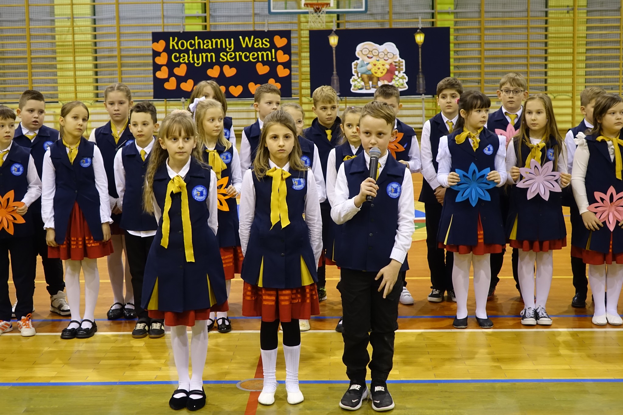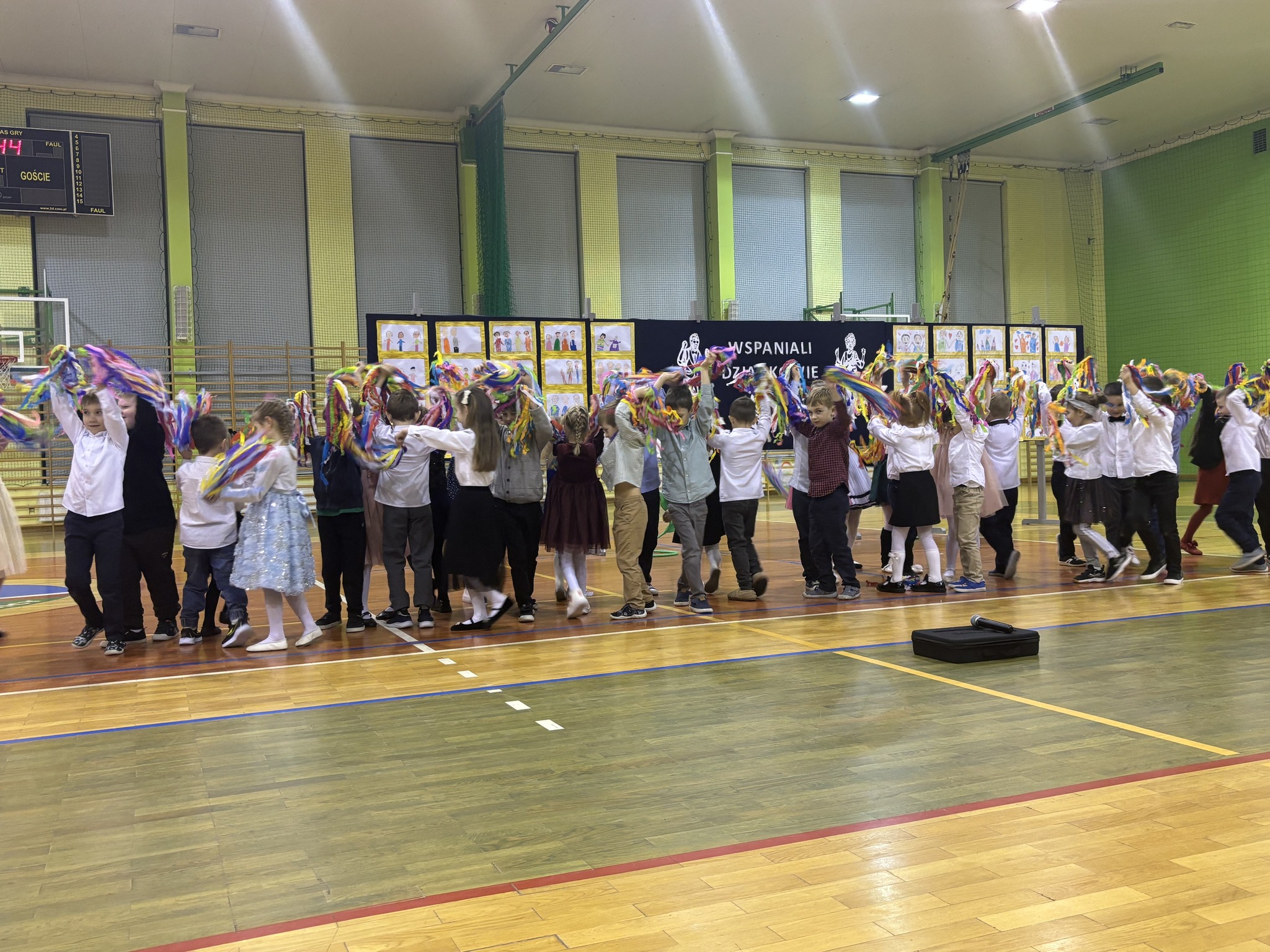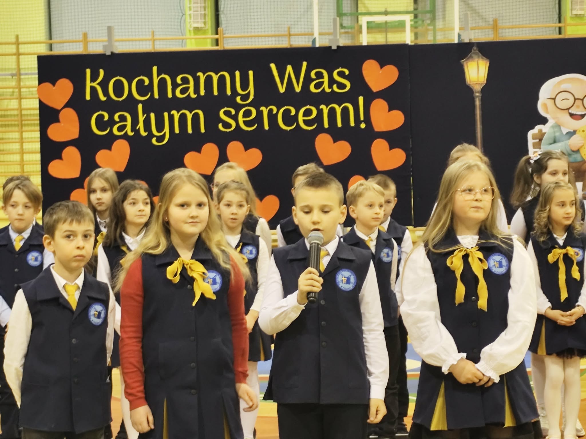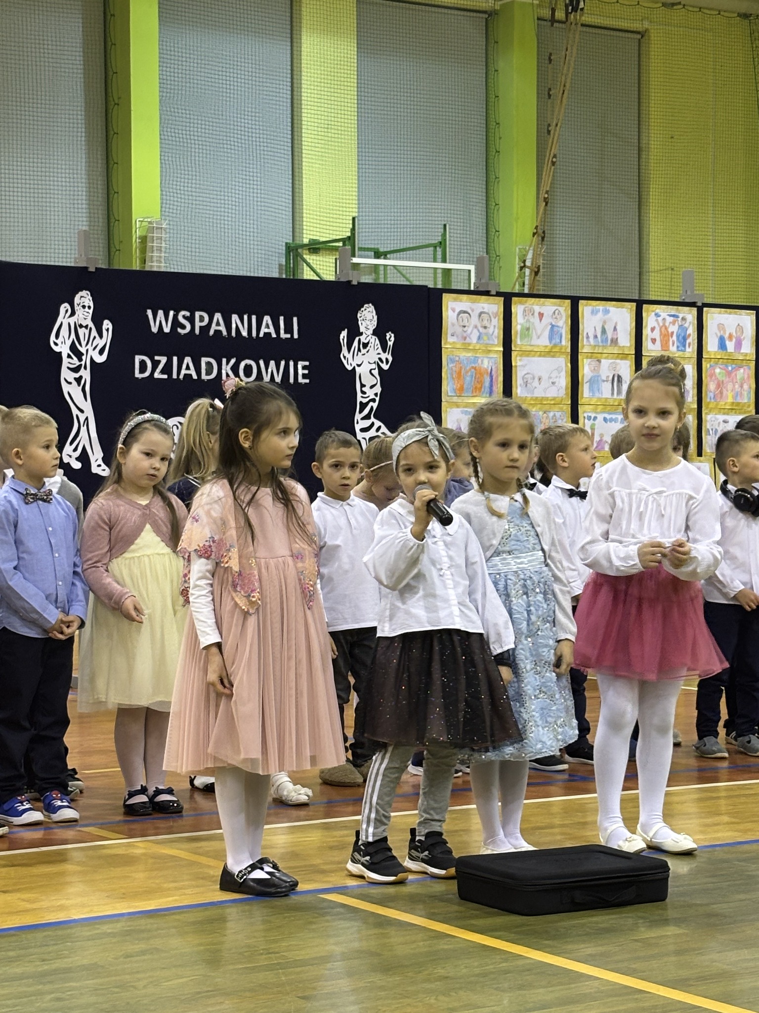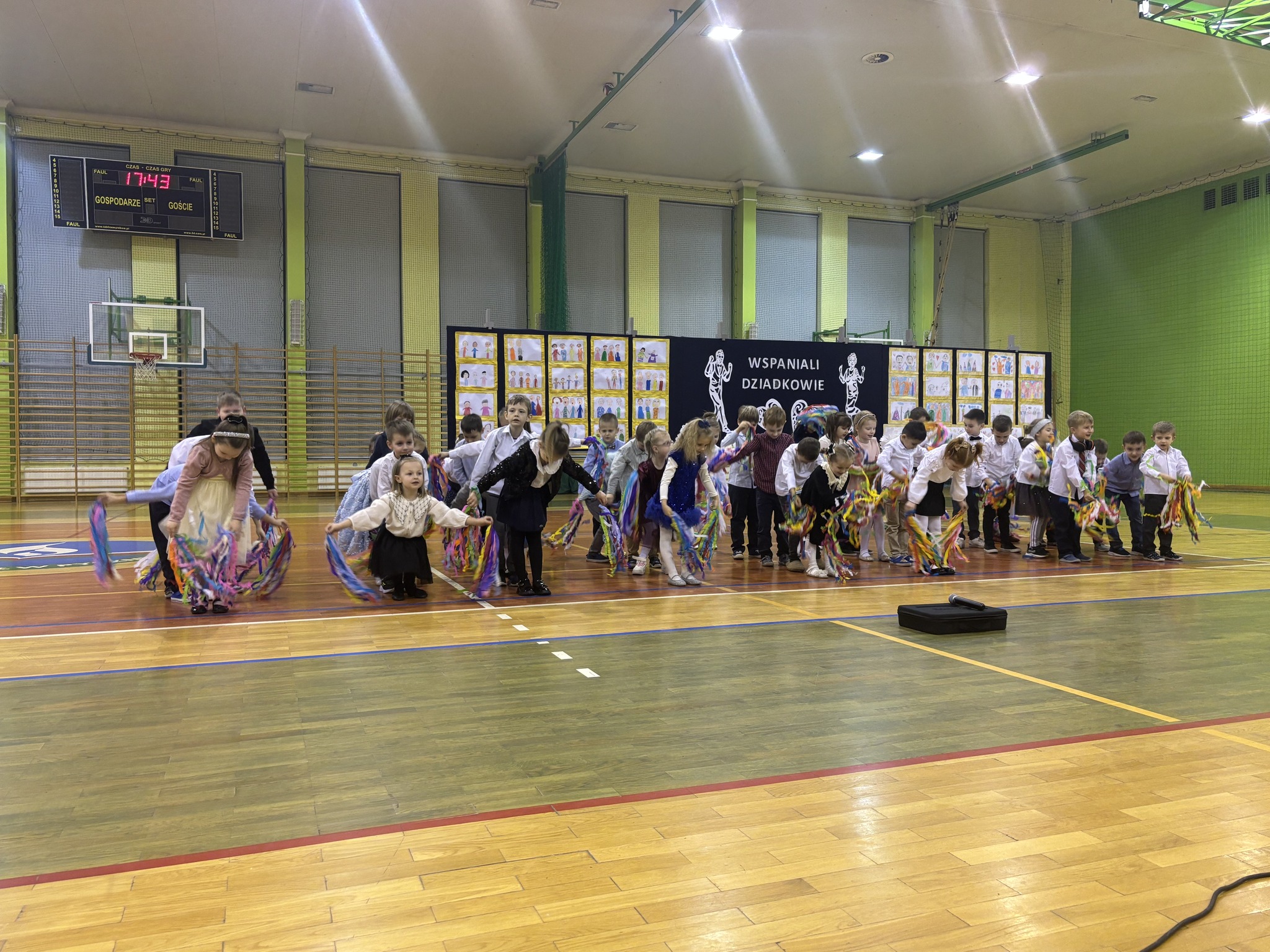 Z kolei 22 stycznia uczniowie klas pierwszych zaprezentowali część artystyczną z okazji Dnia Babci i Dziadka. Występ był zwieńczeniem kilkutygodniowych przygotowań, podczas których uczniowie z dużym zaangażowaniem uczyli się układów tanecznych, wierszy oraz piosenek. Recytowane przez uczniów wiersze wyrażały wdzięczność, miłość oraz szacunek wobec Babć i Dziadków. Występy taneczne były starannie przygotowane, a uczniowie z dużym zaangażowaniem i radością prezentowali wcześniej wyuczone układy choreograficzne. Śpiewane piosenki, dostosowane do wieku wykonawców, wprowadziły ciepłą i wzruszającą atmosferę, podkreślając uroczysty charakter spotkania.