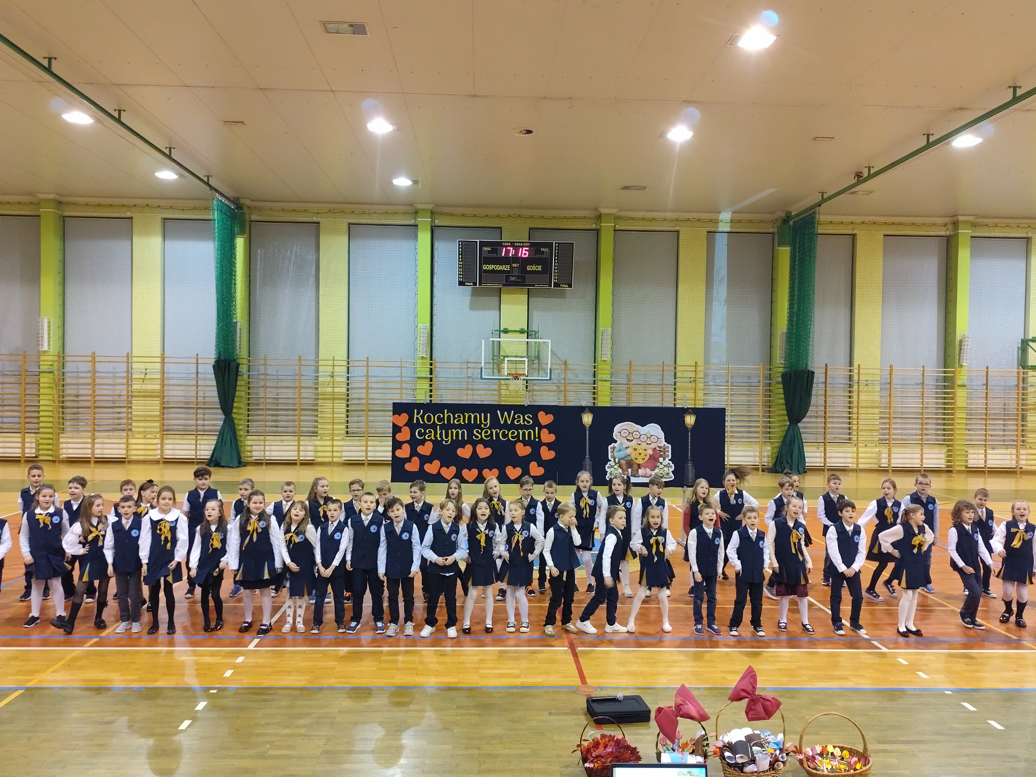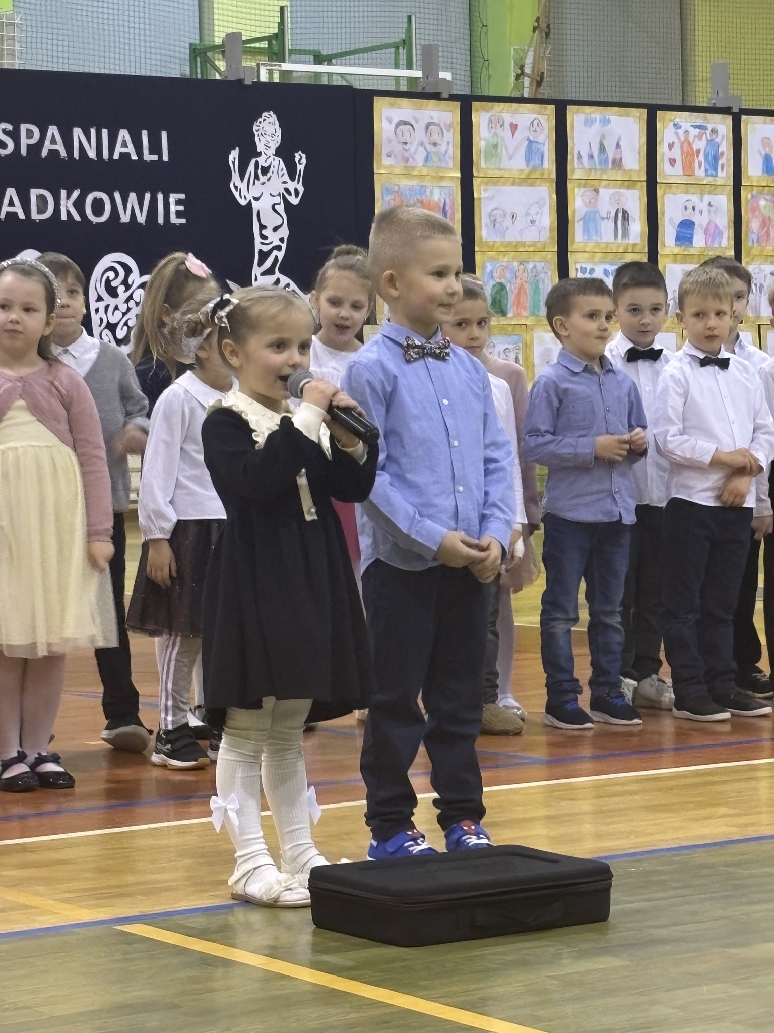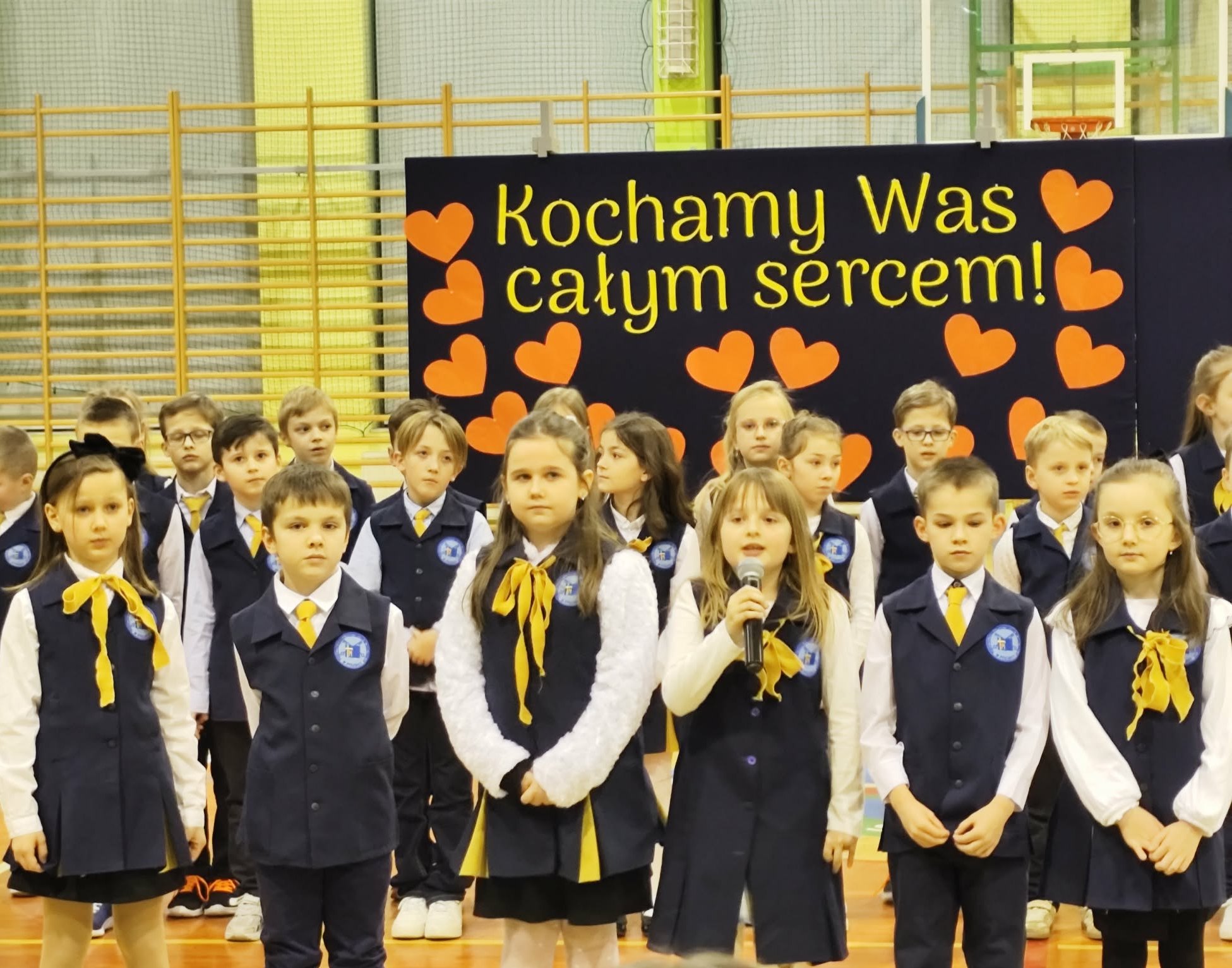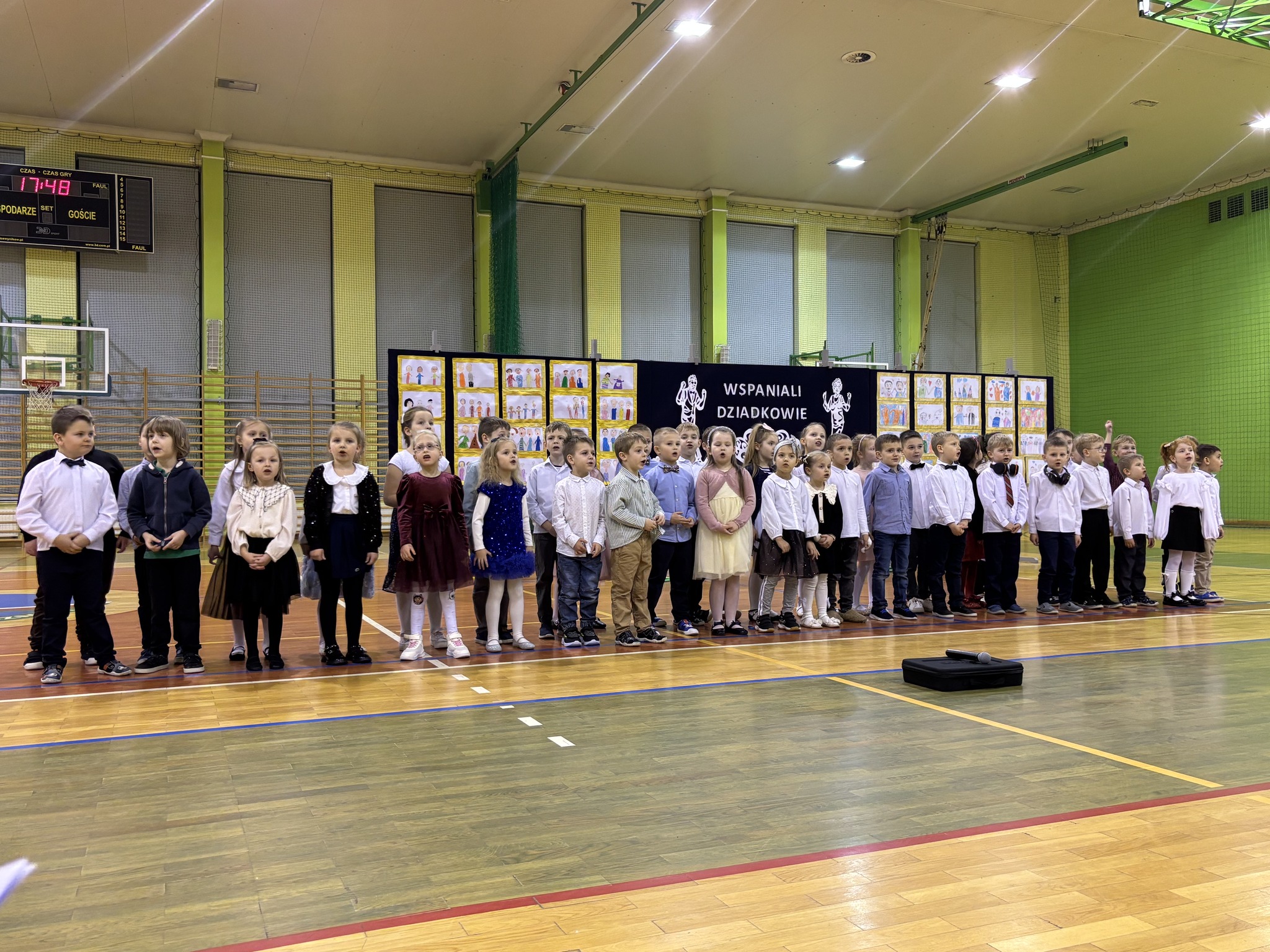 Z kolei 22 stycznia uczniowie klas pierwszych zaprezentowali część artystyczną z okazji Dnia Babci i Dziadka. Występ był zwieńczeniem kilkutygodniowych przygotowań, podczas których uczniowie z dużym zaangażowaniem uczyli się układów tanecznych, wierszy oraz piosenek. Recytowane przez uczniów wiersze wyrażały wdzięczność, miłość oraz szacunek wobec Babć i Dziadków. Występy taneczne były starannie przygotowane, a uczniowie z dużym zaangażowaniem i radością prezentowali wcześniej wyuczone układy choreograficzne. Śpiewane piosenki, dostosowane do wieku wykonawców, wprowadziły ciepłą i wzruszającą atmosferę, podkreślając uroczysty charakter spotkania.