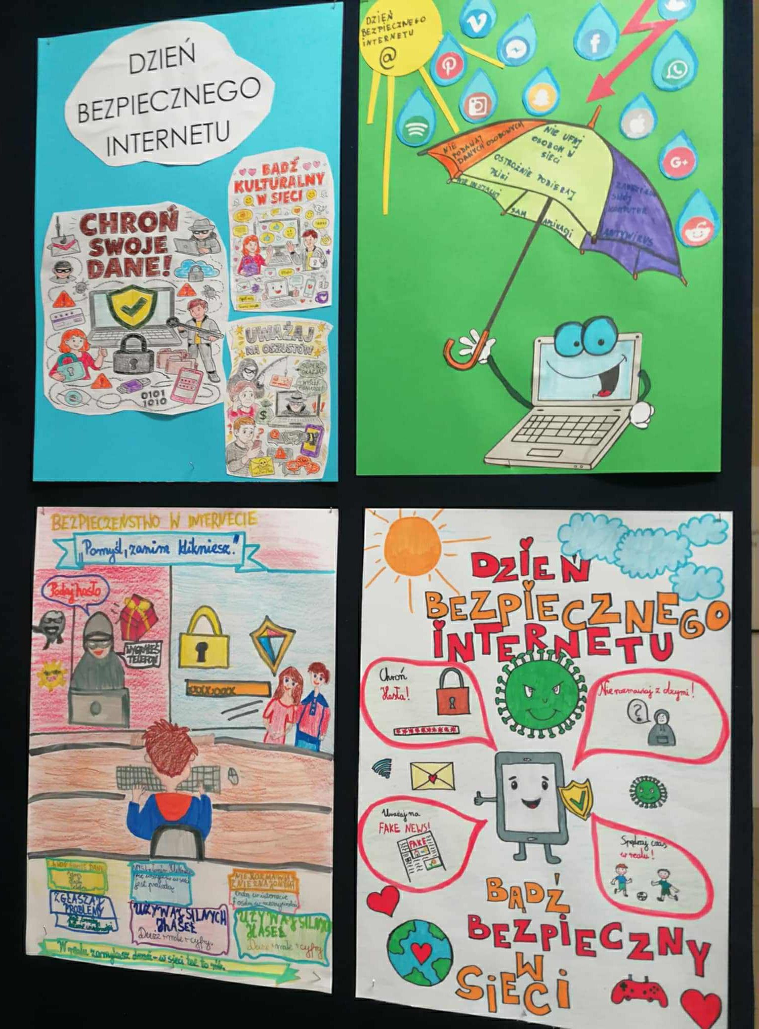 Dużym zaangażowaniem wykazali się także nasi uczniowie, którzy przygotowali plakaty promujące dobre praktyki online. Wykazali się dużą kreatywnością i świetnymi pomysłami.