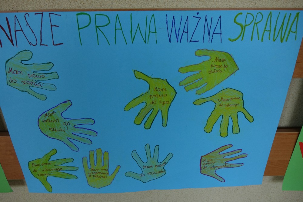 Dzieci i młodzież pod opieką wychowawców spędzała czas na świeżym powietrzu wymyślając ciekawe zabawy. Uczniowie klas I-III zapoznali się ze swoimi prawami, uczestnicząc w prezentacji filmu edukacyjnego, a następnie zilustrowali swoje prawa w formie kolorowych plakatów. Podczas zajęć dzieci dowiedziały się, do kogo zwrócić się z prośbą o pomoc w trudnych sytuacjach życiowych.