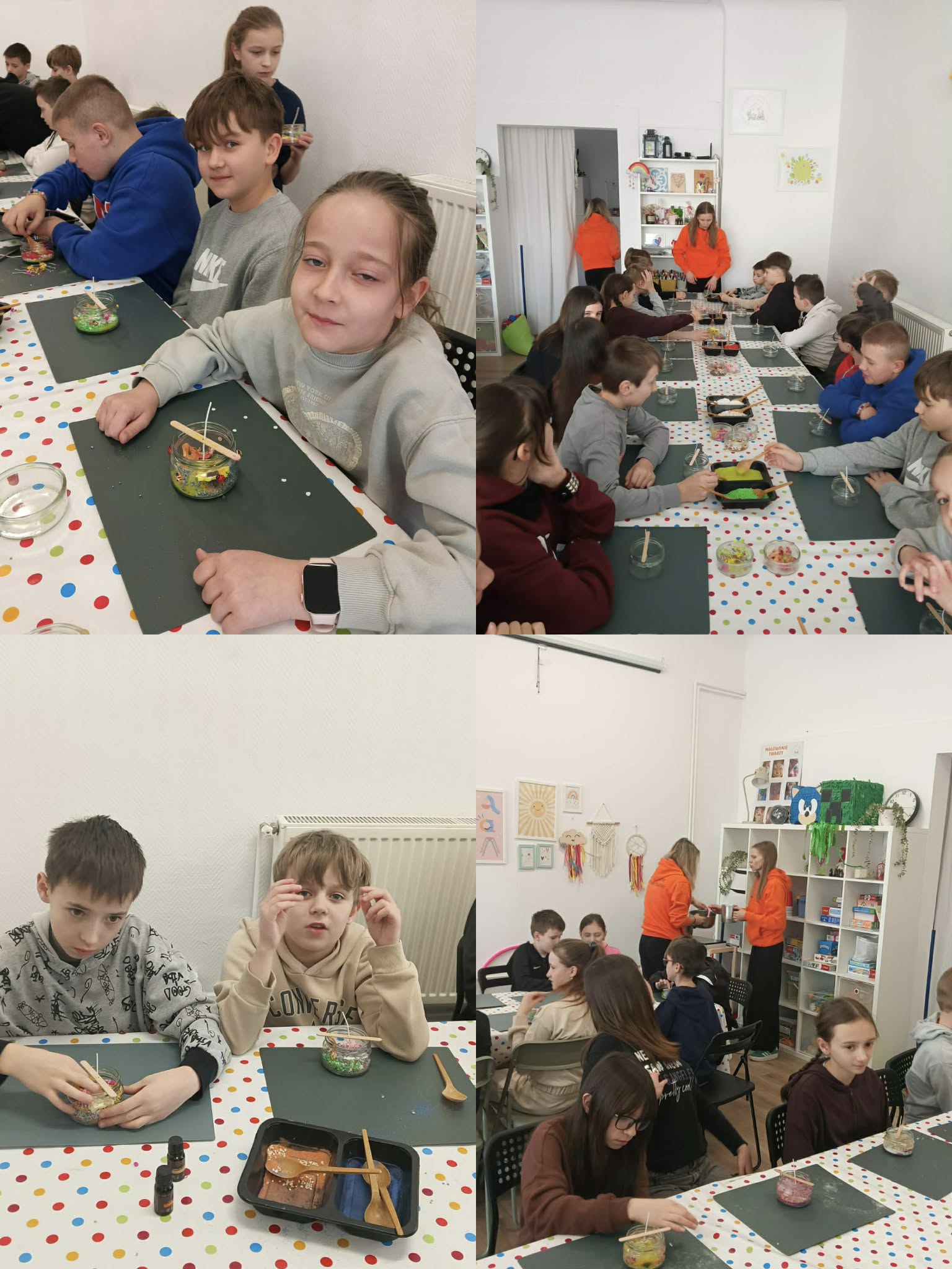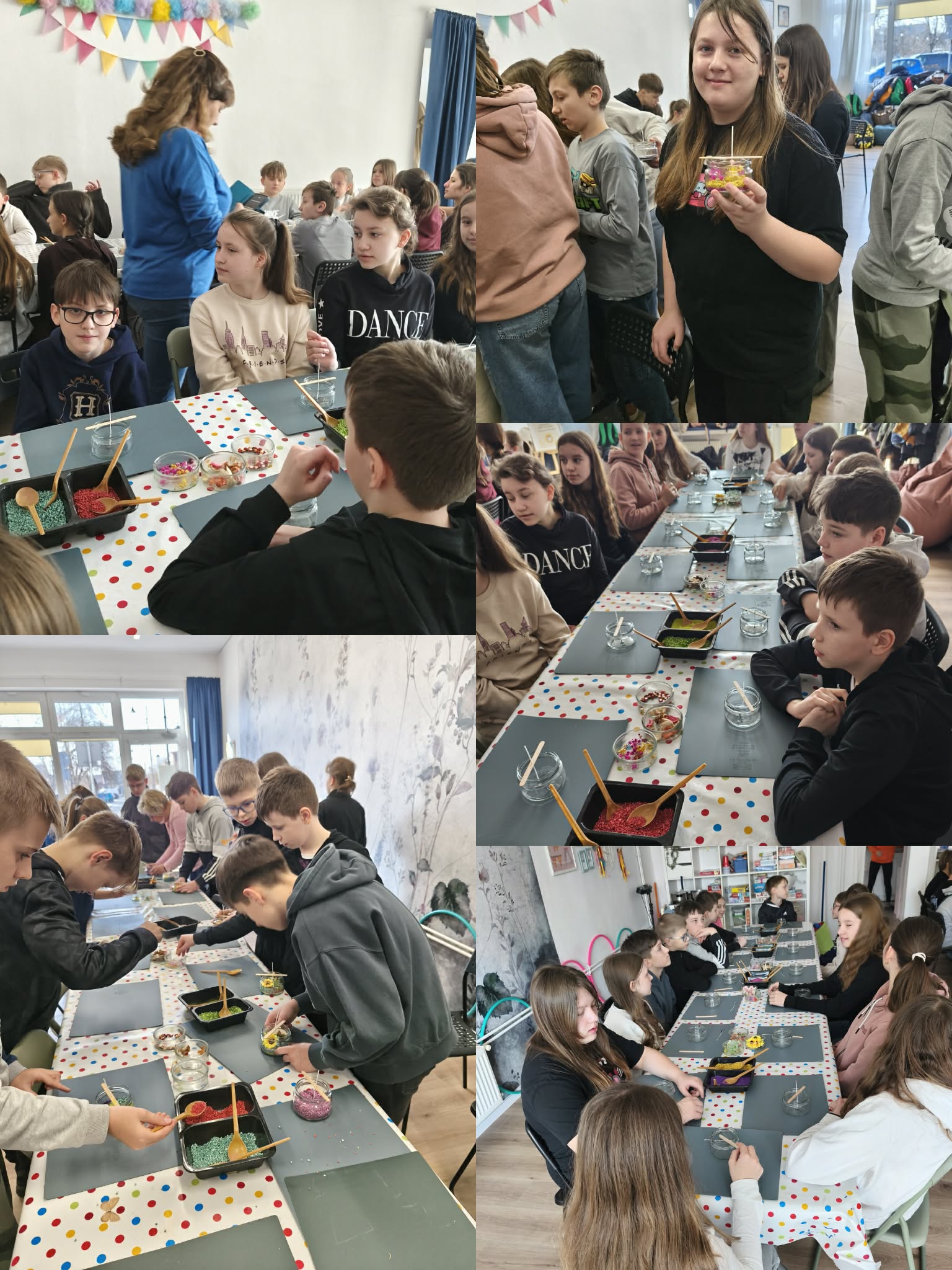 Dnia 12 marca uczniowie klas 5 a i b brali udział w kreatywnych warsztatach zorganizowanych z okazji niedawno obchodzonego Dnia Kobiet. Warsztaty zostały zorganizowane przez Stowarzyszenie „Kreatywne Podwórko”. Pod okiem animatorów uczniowie tworzyli pachnące żelowe świeczki. Na koniec dzieci miały okazję na świeżym powietrzu brać udział w zabawach integrujących oba zespoły. To był miło oraz kreatywnie spędzony czas.