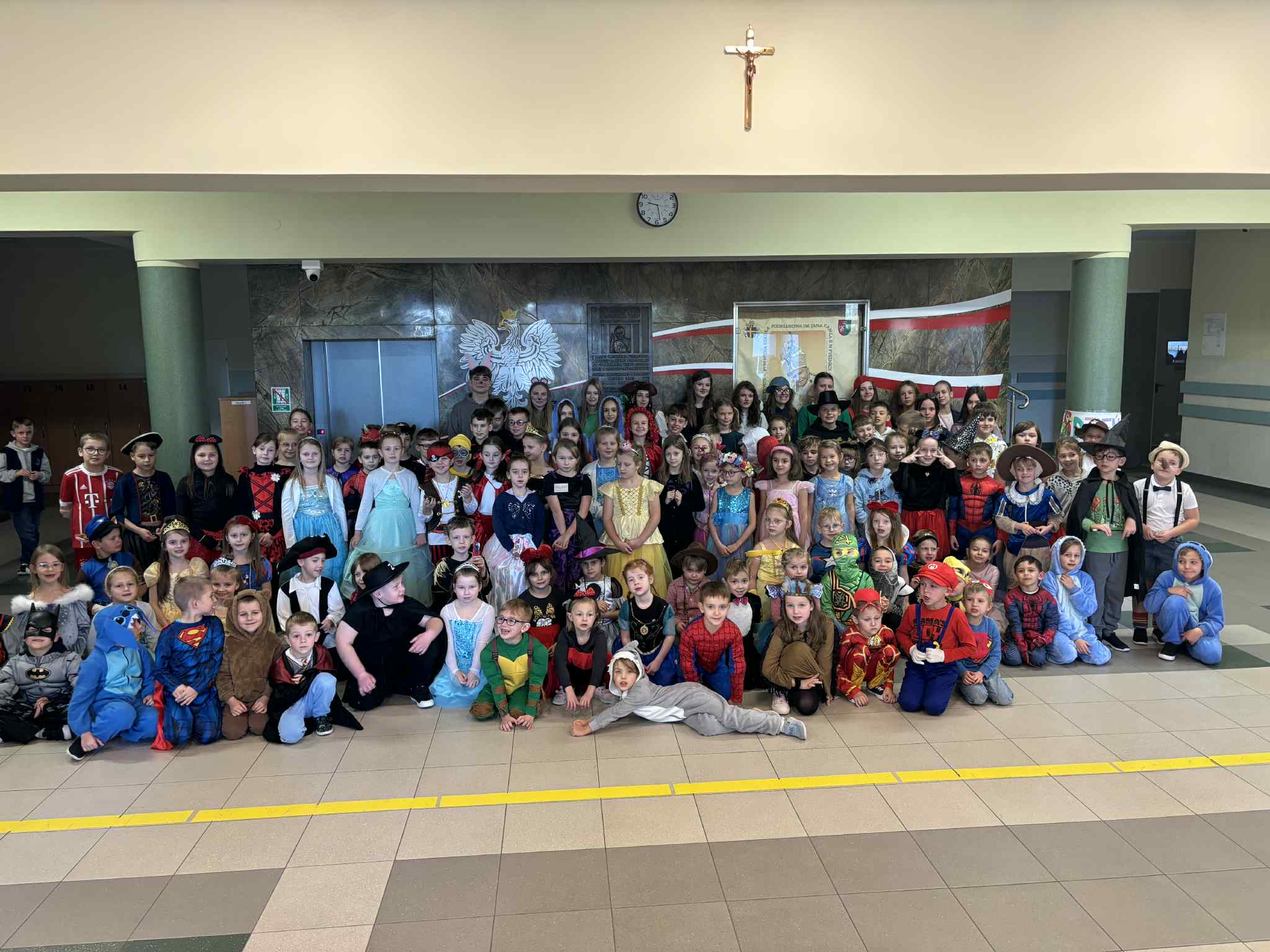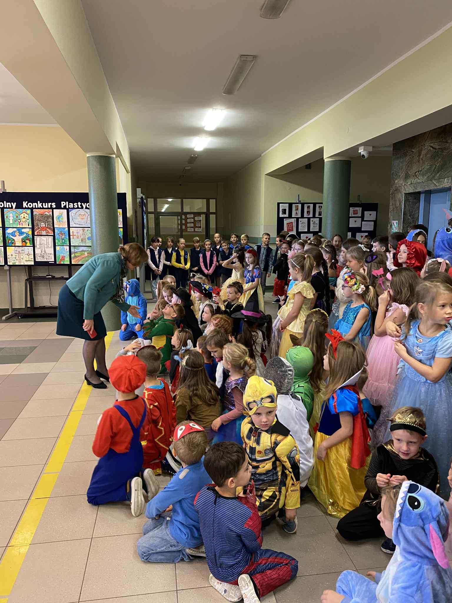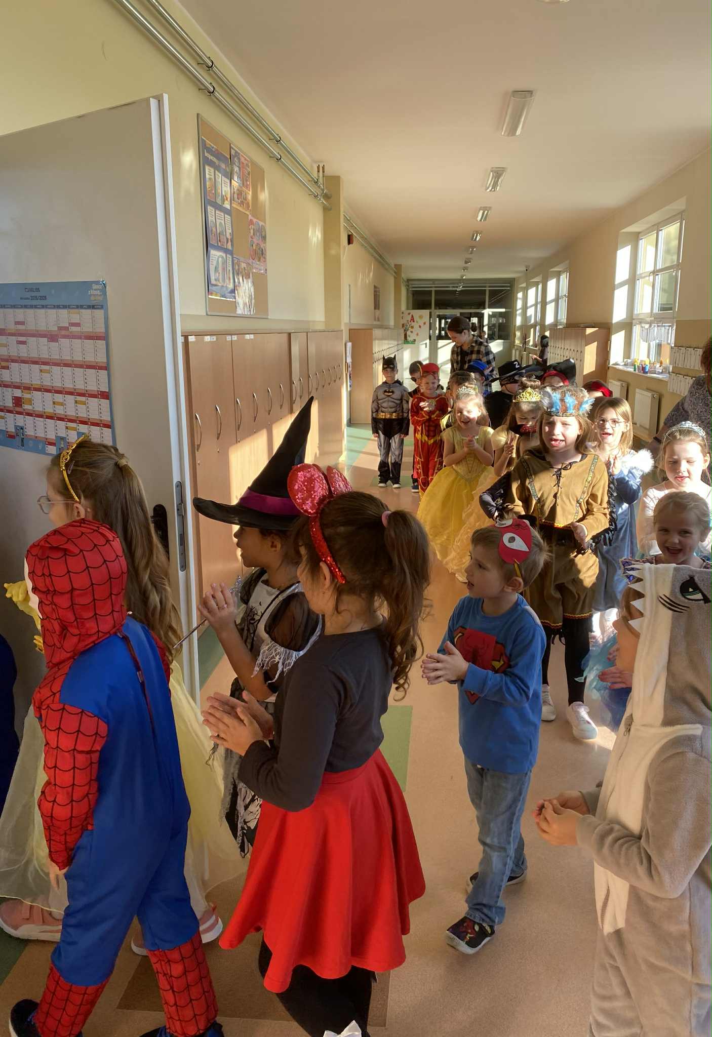 Po czytaniu odbył się barwny korowód bajkowych postaci – uczniowie w pięknych, pomysłowych strojach przemaszerowali po całej szkole. Pochód prowadzili najmłodsi, czyli zerówkowicze, do których po drodze dołączali kolejni przebrani uczniowie.