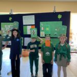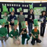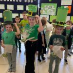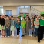 🟩Zorganizowany został konkurs na najpiękniejszy kapelusz skrzata irlandzkiego leprechauna. W rytm muzyki z zielonej wyspy uczniowie z poszczególnych klas prezentowali własnoręcznie zrobione kapelusze. Zwycięzcy konkursu otrzymali słodkie upominki w zielonych kolorach.