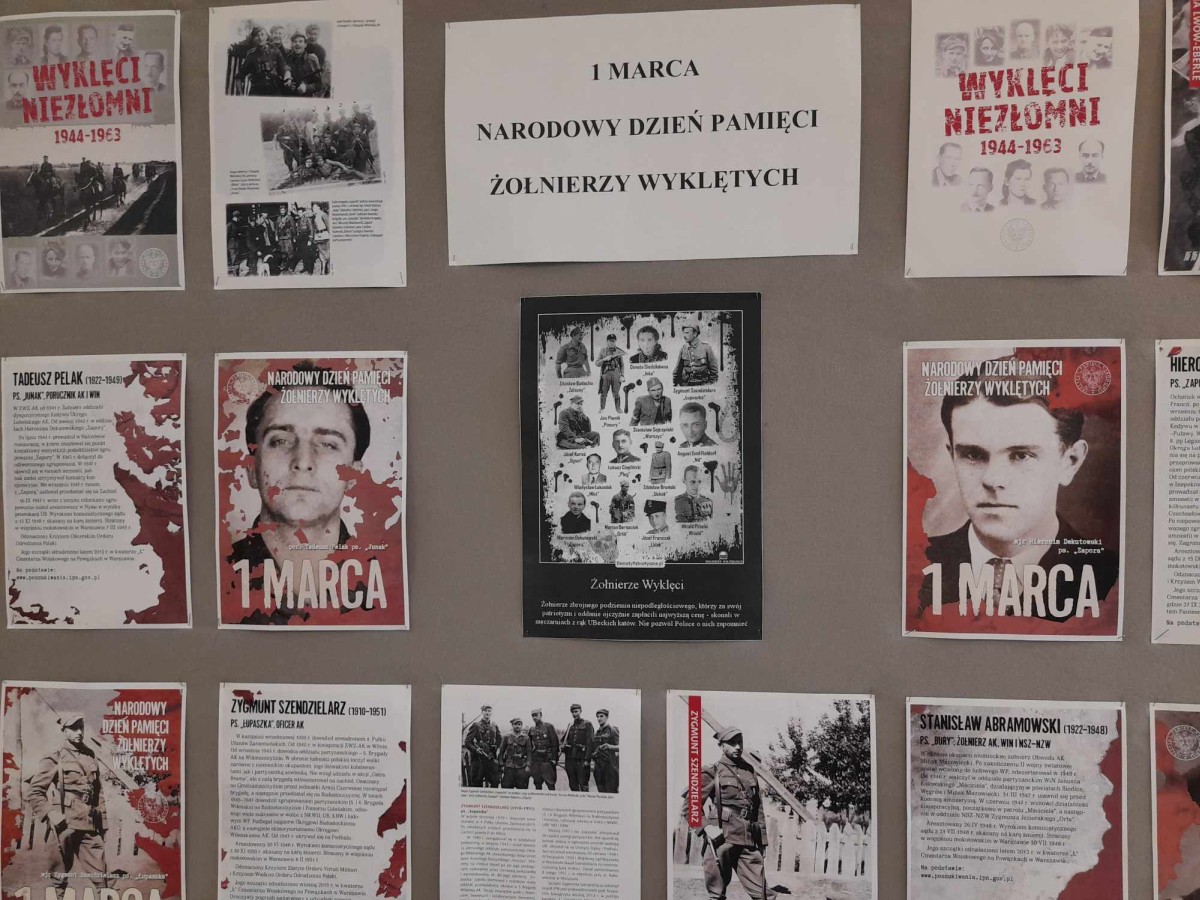 W holu szkoły można obejrzeć gazetkę poświęconą Żołnierzom Niezłomnym stanowiącym ważną część naszej historii. To dzięki nim możemy dziś cieszyć się wolnością i niepodległością.