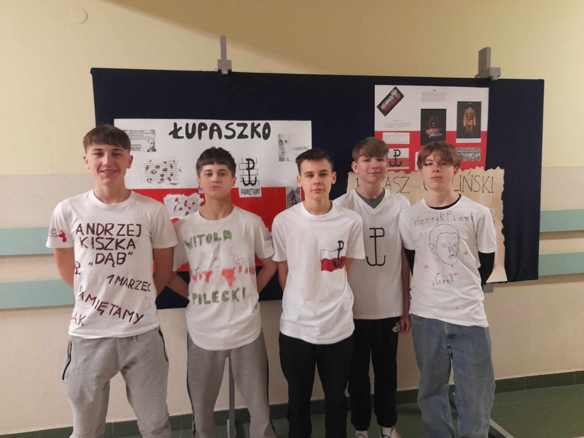 1 marca to Narodowy Dzień Żołnierzy Wyklętych.W tym dniu cała Polska oddaje hołd bohaterom, którzy walczyli o niepodległość naszego kraju po zakończeniu II wojny światowej. Pamięć Żołnierzy Wyklętych w sposób szczególny uczcili uczniowie klasy 8. Własnoręcznie zaprojektowali koszulki poświęcone poszczególnym bohaterom i z dumą prezentowali całej społeczności szkolnej przypominając, że ich odwaga i poświęcenie są godne pamięci i szacunku.