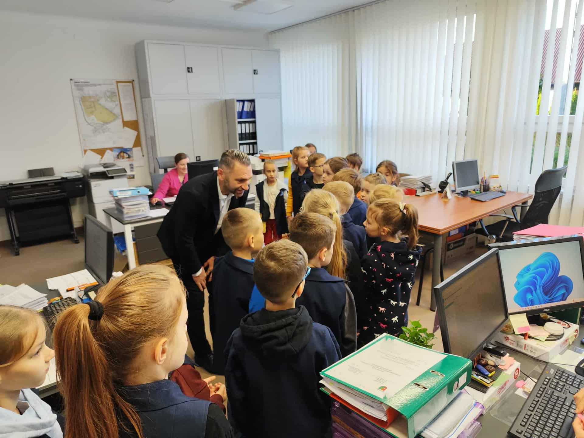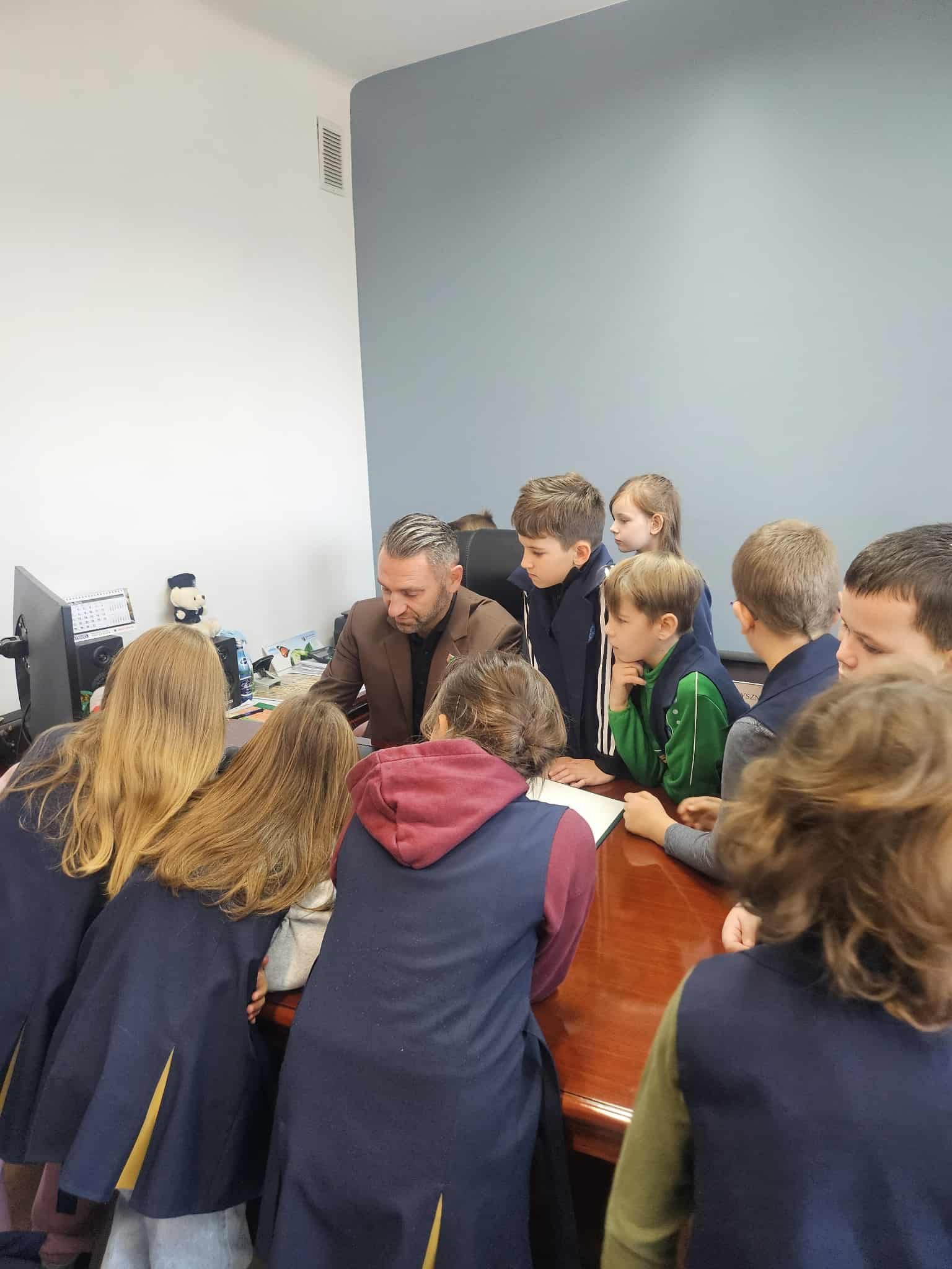 Uczniowie klas IIb i IIc udali się do Urzędu Gminy Pysznica na spotkanie z Wójtem Gminy i zapoznali się z jego obowiązkami i miejscem pracy,