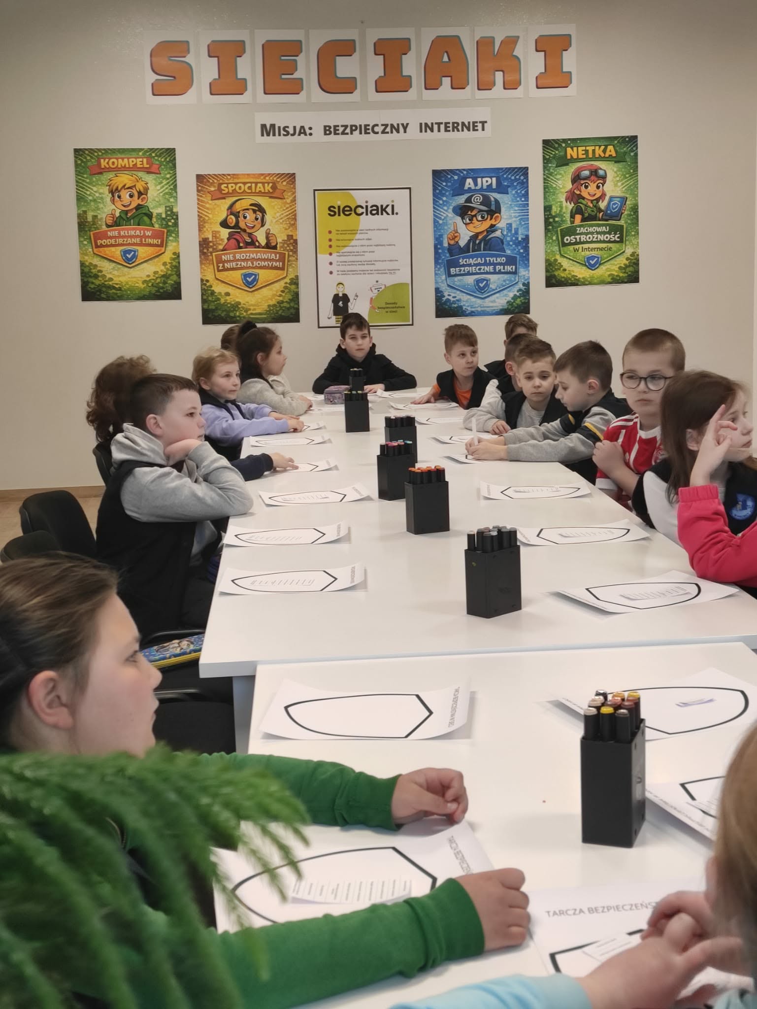 📌W ramach podsumowania zajęć uczniowie wykonali plakaty „Własnej Tarczy Bezpieczeństwa w Sieci”.