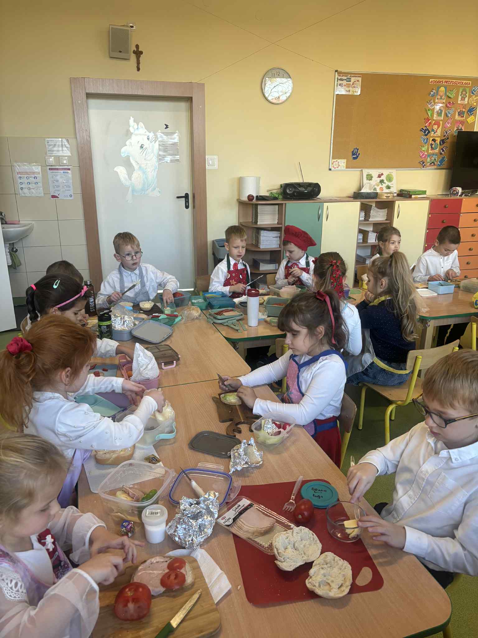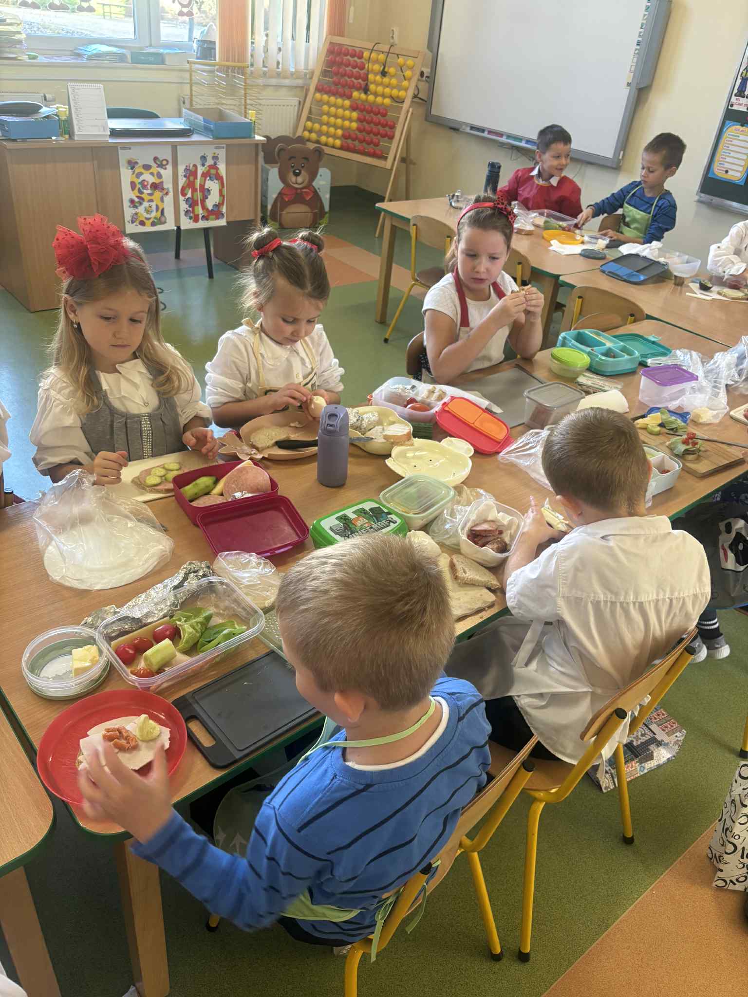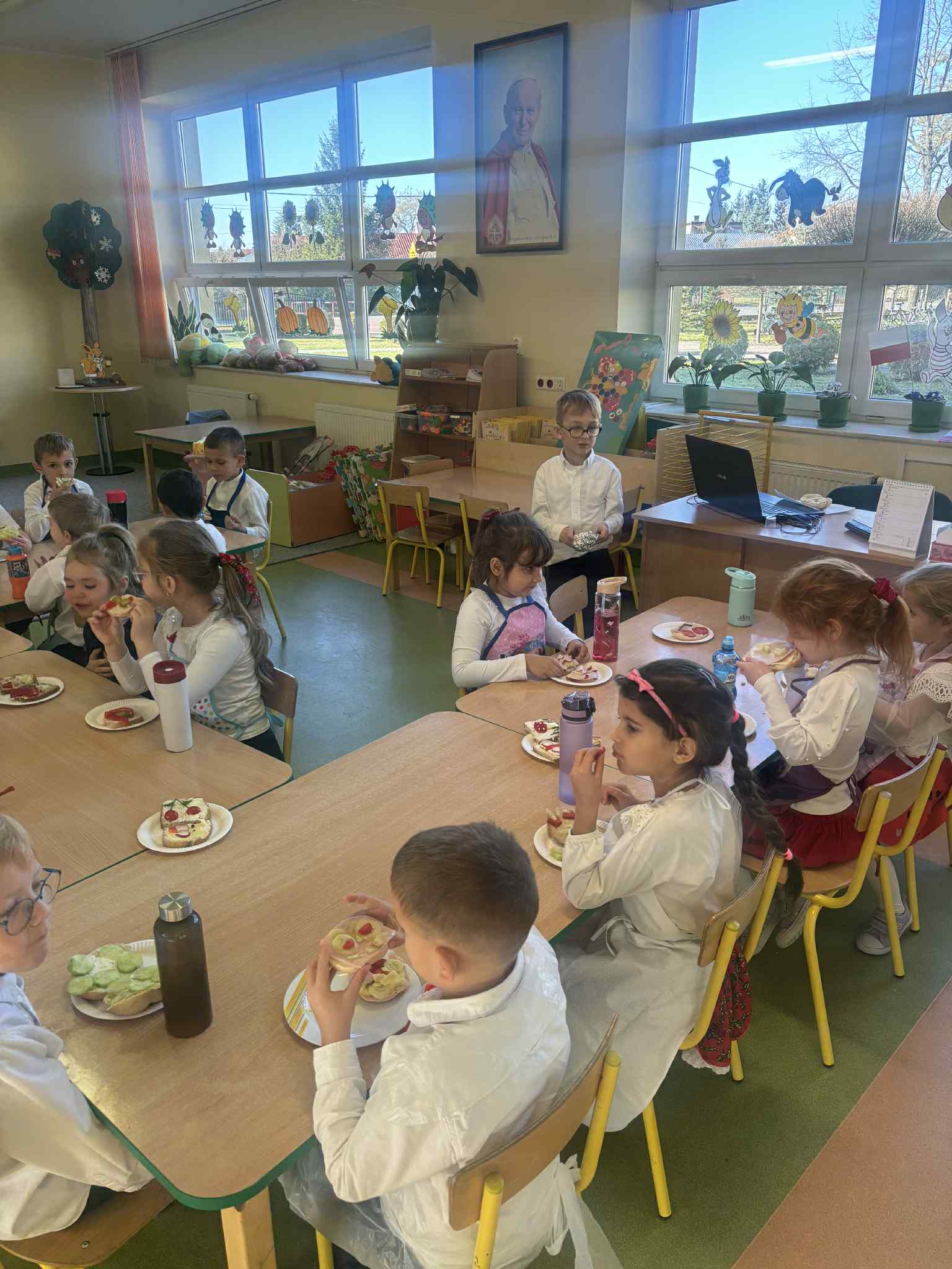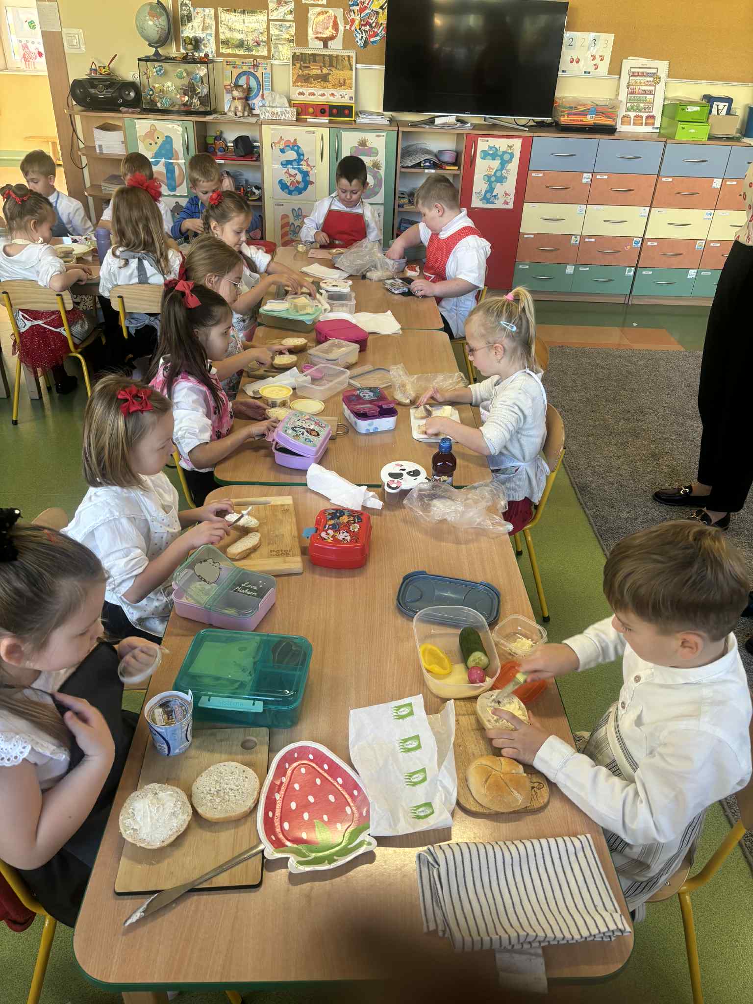 Dzieci z oddziałów przedszkolnych uczestniczyły w ogólnopolskiej akcji edukacyjnej „ŚNIADANIE DAJE MOC”. Celem akcji było zwiększenie świadomości najmłodszych w kwestii prawidłowego odżywiania, ze szczególnym uwzględnieniem śniadania. Dla maluchów był to szczególny poranek – wyjątkowe śniadanie, które miało dodać wszystkim energii do zabawy i nauki. Każdy przedszkolak samodzielnie przygotował swoje kolorowe kanapki🥒🍅🫑 na drugie śniadanie. Było wesoło i smacznie. Dziękujemy rodzicom za przygotowanie produktów potrzebnych do zorganizowania zdrowego śniadania.