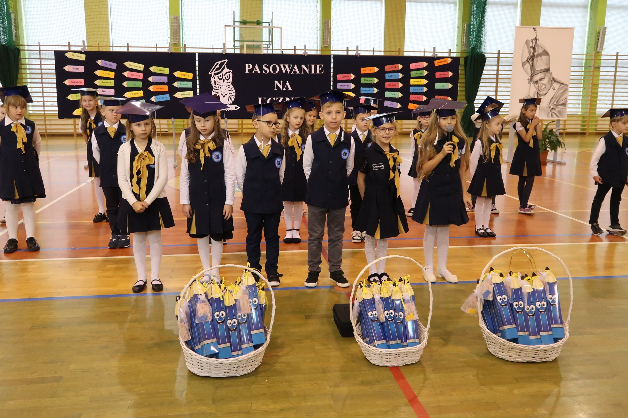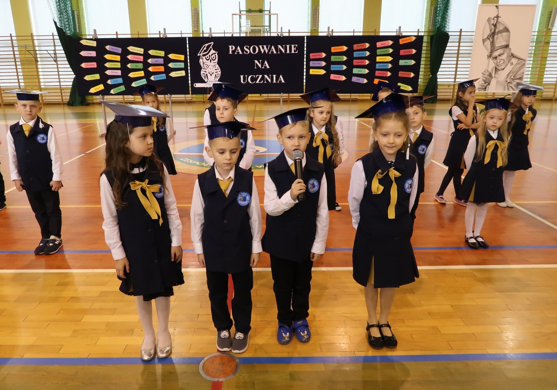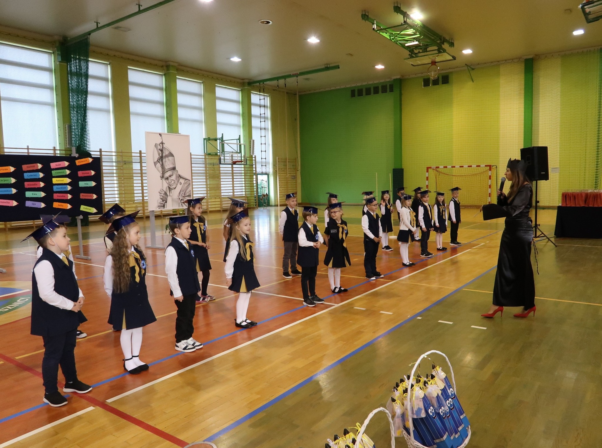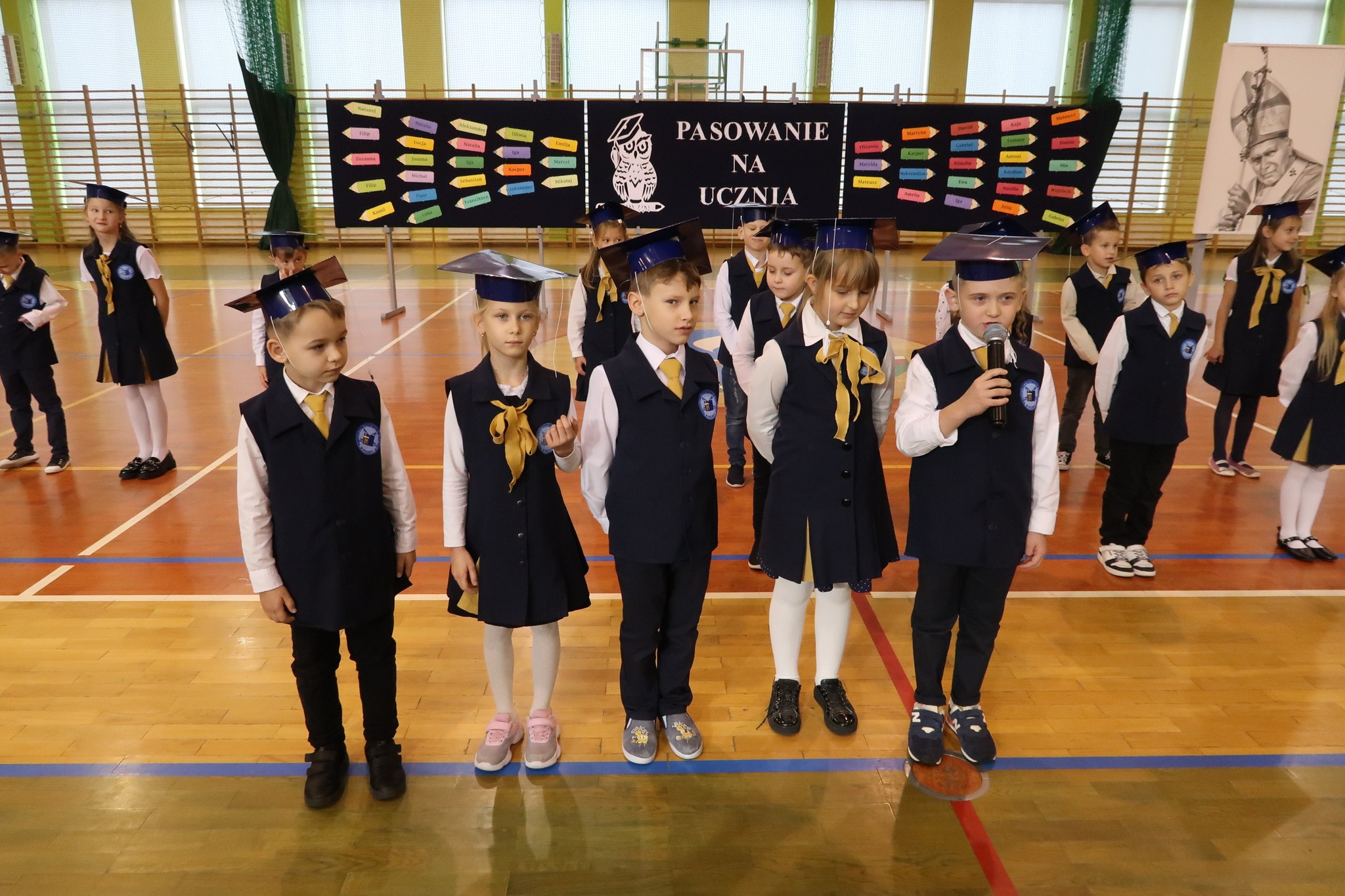 Dnia 16 października obchodziliśmy w naszej szkole Święto Szkoły, połączone z uroczystym Pasowaniem na Ucznia. To wyjątkowy dzień, w którym wspominamy wybór św. Jana Pawła II na papieża. Wydarzenie to miało wyjątkowy, uroczysty, a zarazem radosny charakter. Uczniowie klas pierwszych zaprezentowali przygotowany program artystyczny, podczas którego recytowali wiersze, śpiewali piosenki oraz przedstawili układ taneczny. Kulminacyjnym momentem spotkania było uroczyste pasowanie na ucznia, którego dokonała Dyrektor Szkoły Pani Teresa Mierzwa, symbolicznie przyjmując pierwszoklasistów do grona społeczności szkolnej.