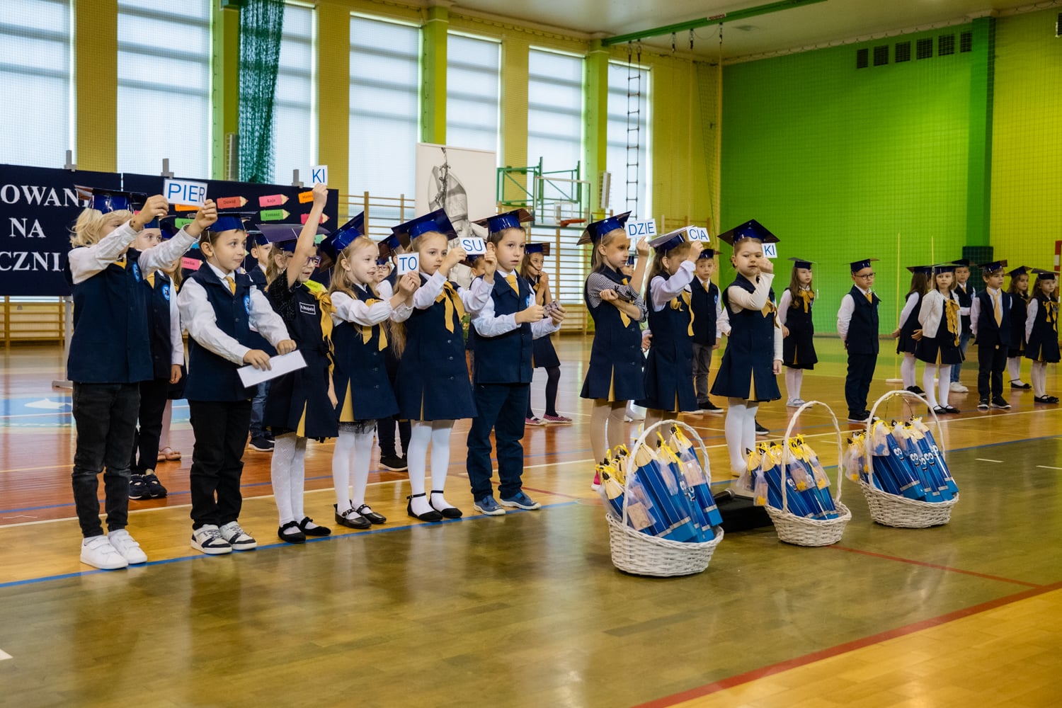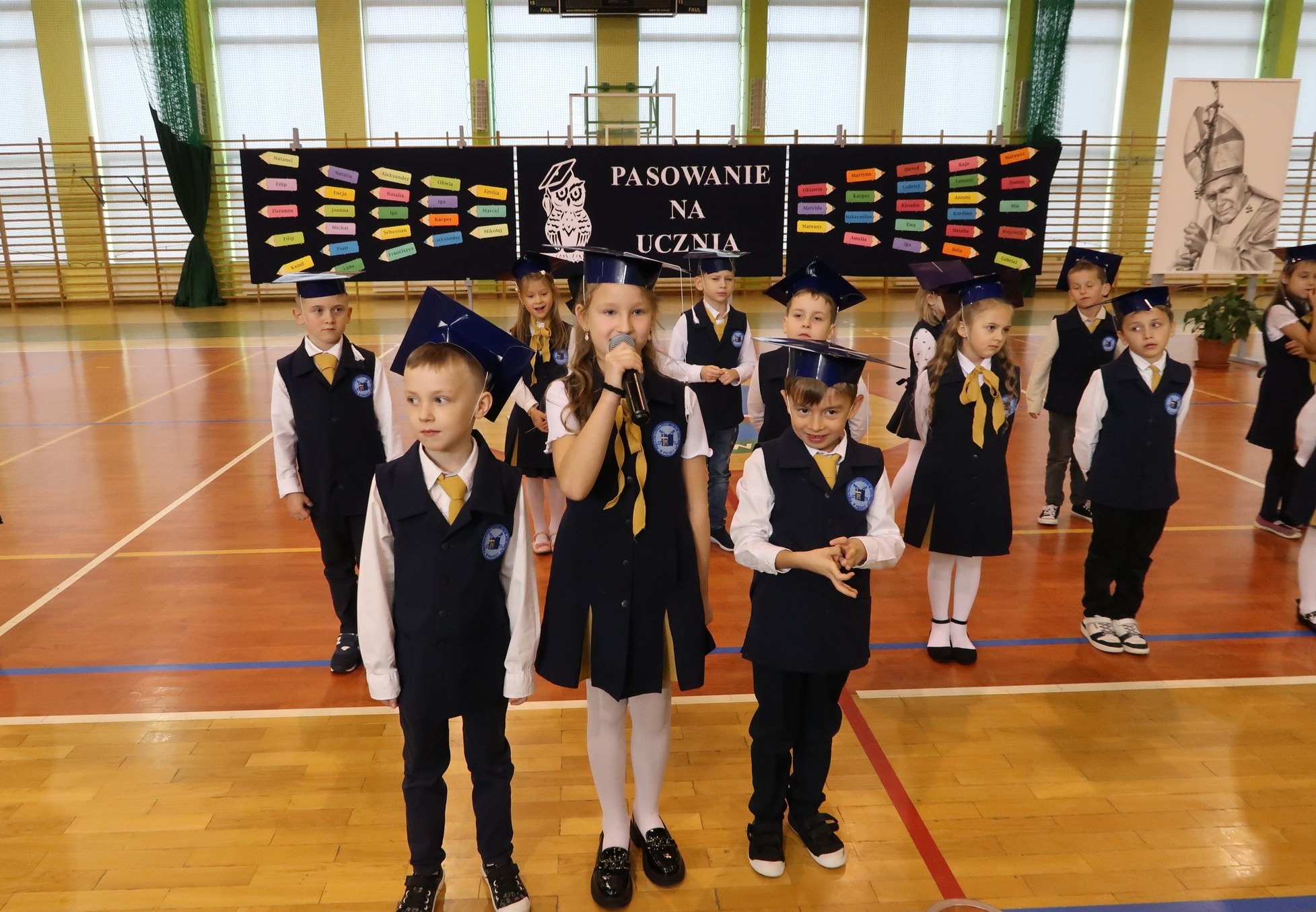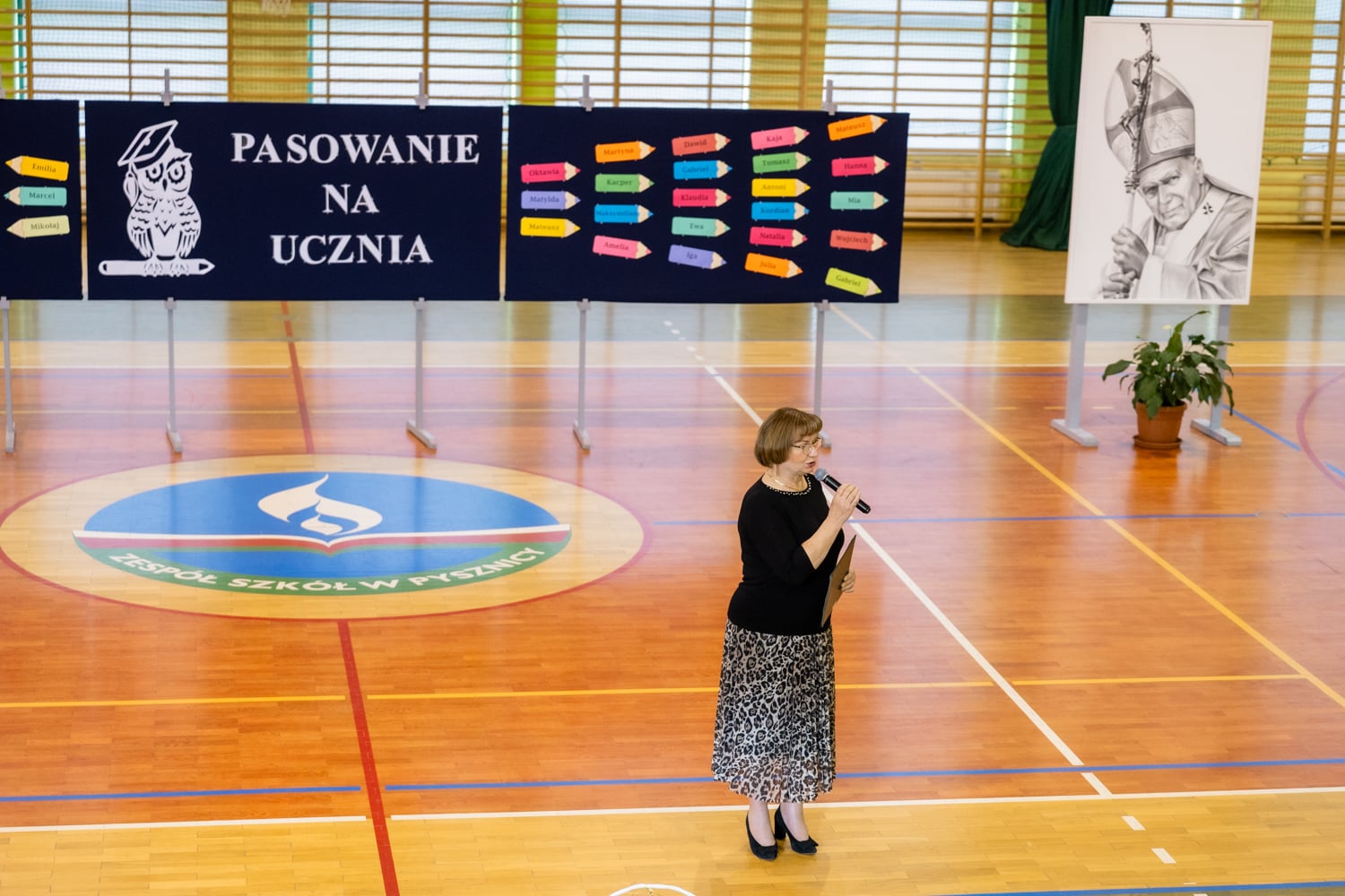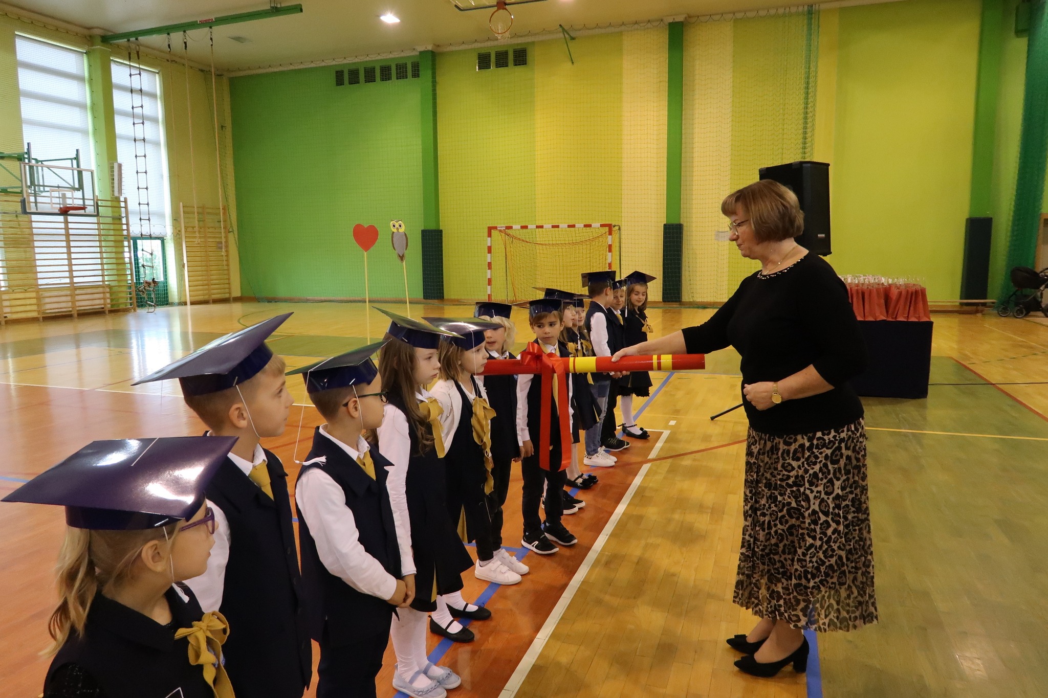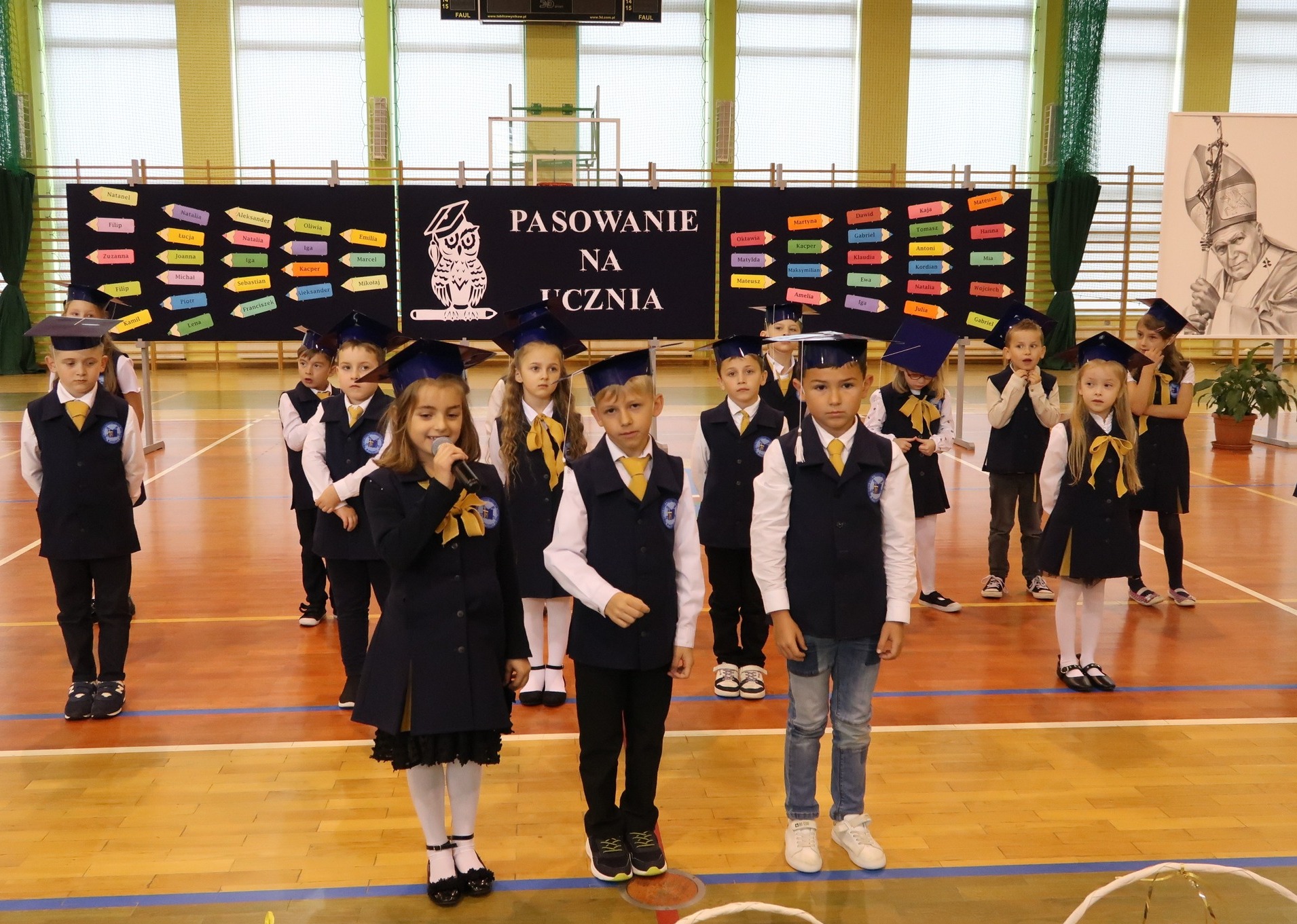 Dnia 16 października obchodziliśmy w naszej szkole Święto Szkoły, połączone z uroczystym Pasowaniem na Ucznia. To wyjątkowy dzień, w którym wspominamy wybór św. Jana Pawła II na papieża. Wydarzenie to miało wyjątkowy, uroczysty, a zarazem radosny charakter. Uczniowie klas pierwszych zaprezentowali przygotowany program artystyczny, podczas którego recytowali wiersze, śpiewali piosenki oraz przedstawili układ taneczny. Kulminacyjnym momentem spotkania było uroczyste pasowanie na ucznia, którego dokonała Dyrektor Szkoły Pani Teresa Mierzwa, symbolicznie przyjmując pierwszoklasistów do grona społeczności szkolnej.