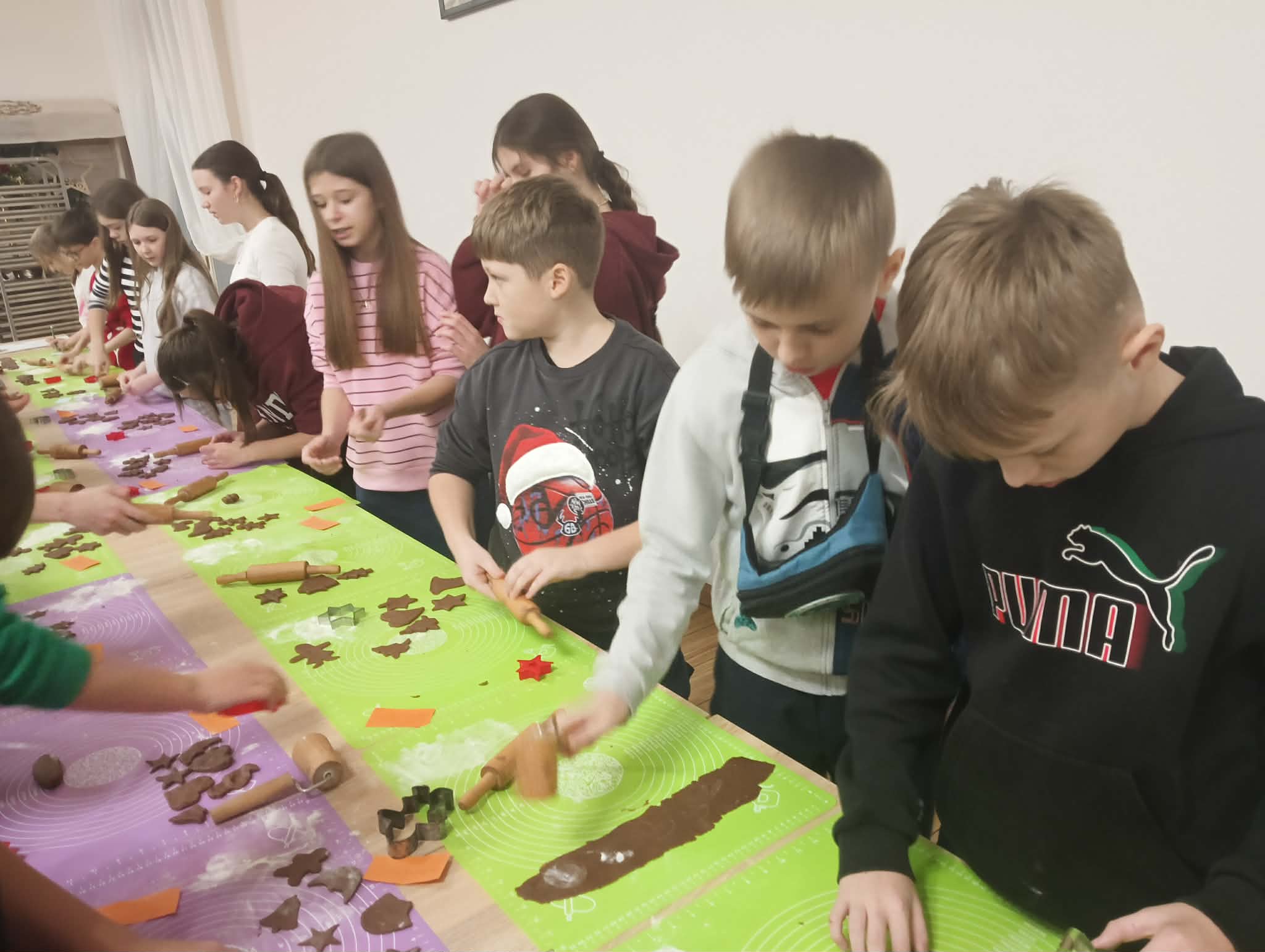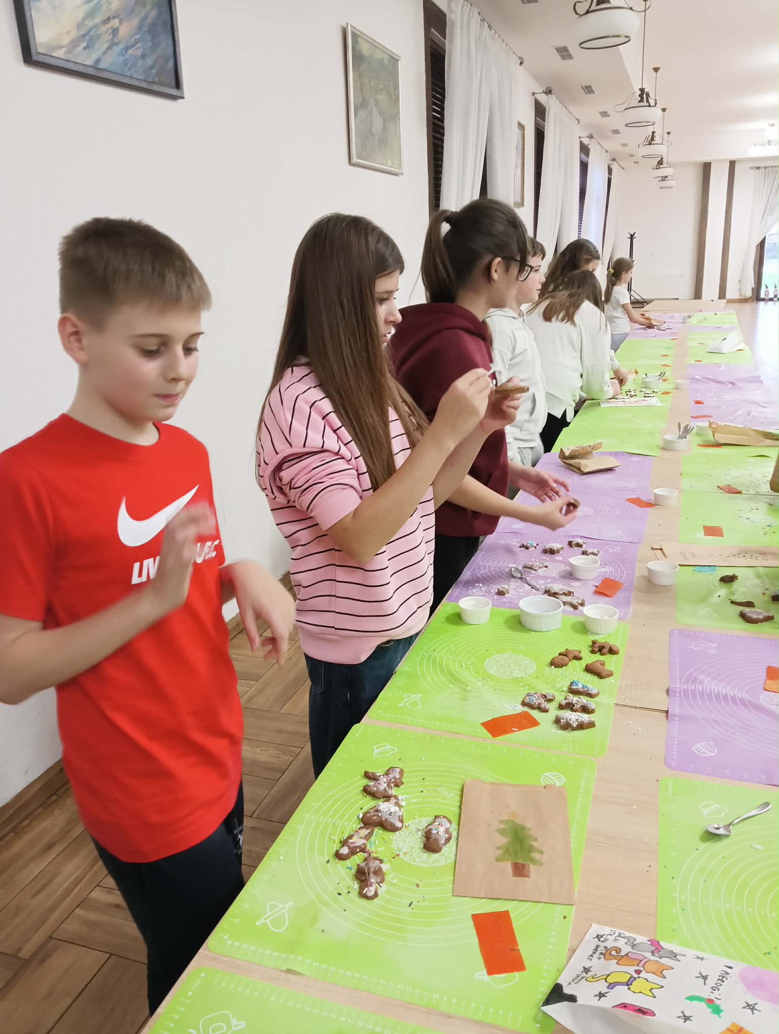 11 grudnia uczniowie klas 5a i 5b wraz z opiekunami wzięli udział w warsztatach bożonarodzeniowych 🌲🌲🌲 w gospodarstwie agroturystycznym “Madejówka”. Uczniowie śpiewali kolędy, rozmawiali o tradycjach świątecznych, robili i dekorowali własne pierniczki, zajadali się pysznymi pierogami, a wszystko odbyło się w wesołej, miłej i świątecznej atmosferze. Znaleźliśmy też czas na karmienie uroczych zwierzątek, które są hodowane w tutejszym gospodarstwie. Wisienką na torcie okazała się wizyta Świętego Mikołaja, 🎅🎅🎅 który miał dla każdego słodki prezent. 🎁🎁🎁