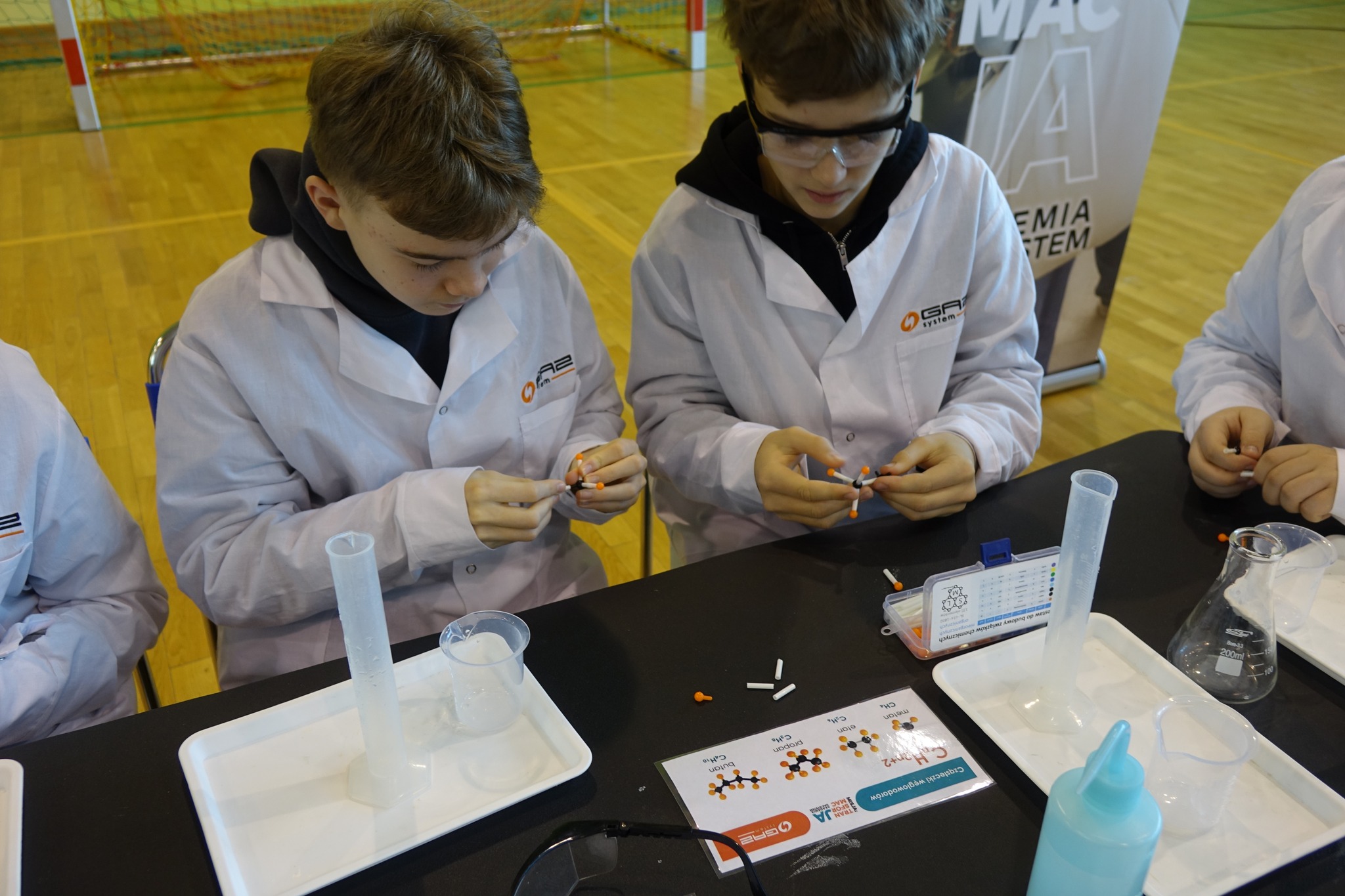 Uczniowie klas 7 i 8 wzięli udział w warsztatach fizyko-chemicznych, które pokazały, że nauka najlepiej wchodzi do głowy wtedy, gdy można jej doświadczyć. Podczas zajęć młodzież samodzielnie planowała i wykonywała eksperymenty, obserwowała zjawiska oraz wyciągała wnioski, łącząc teorię z praktyką.