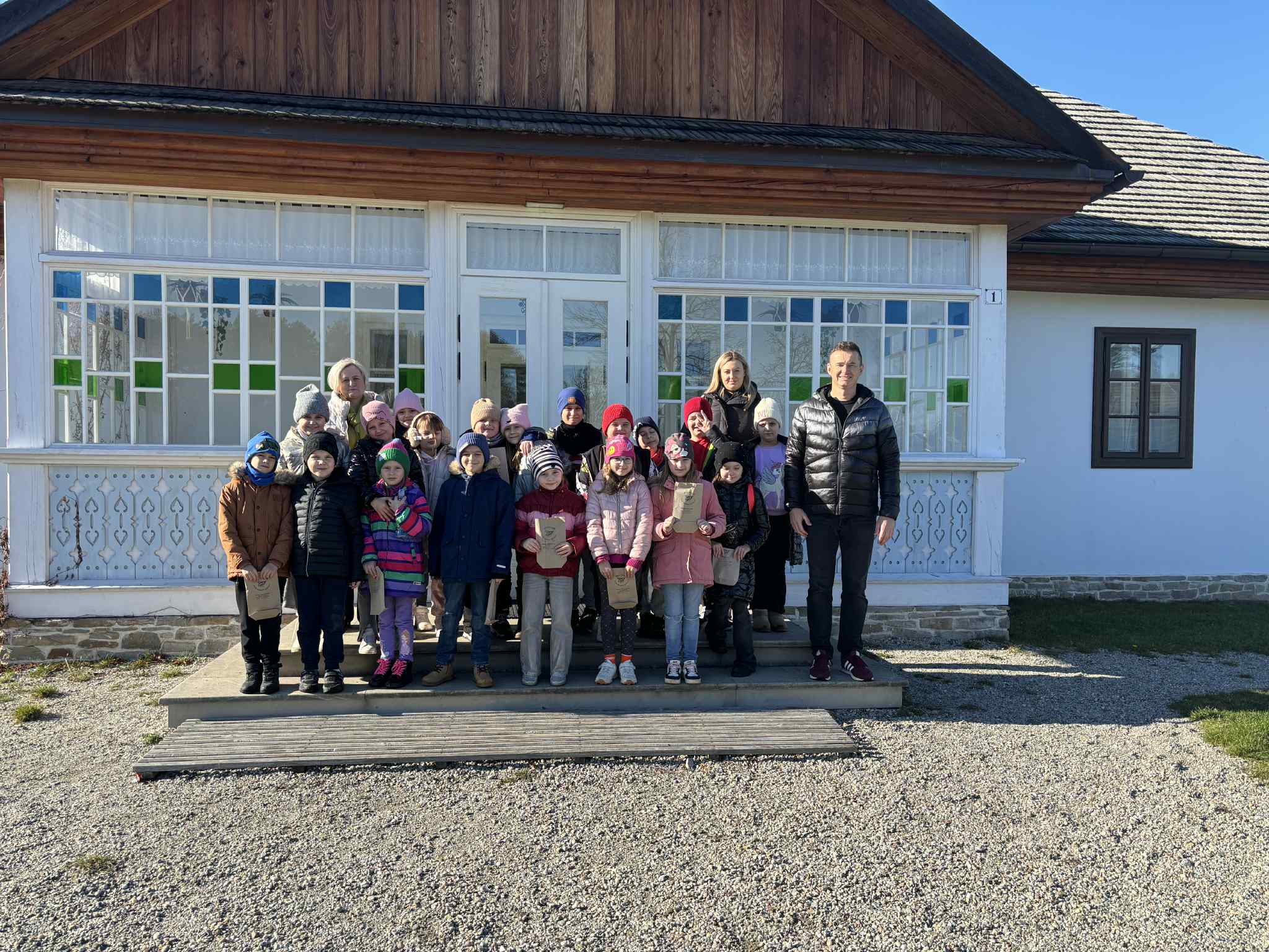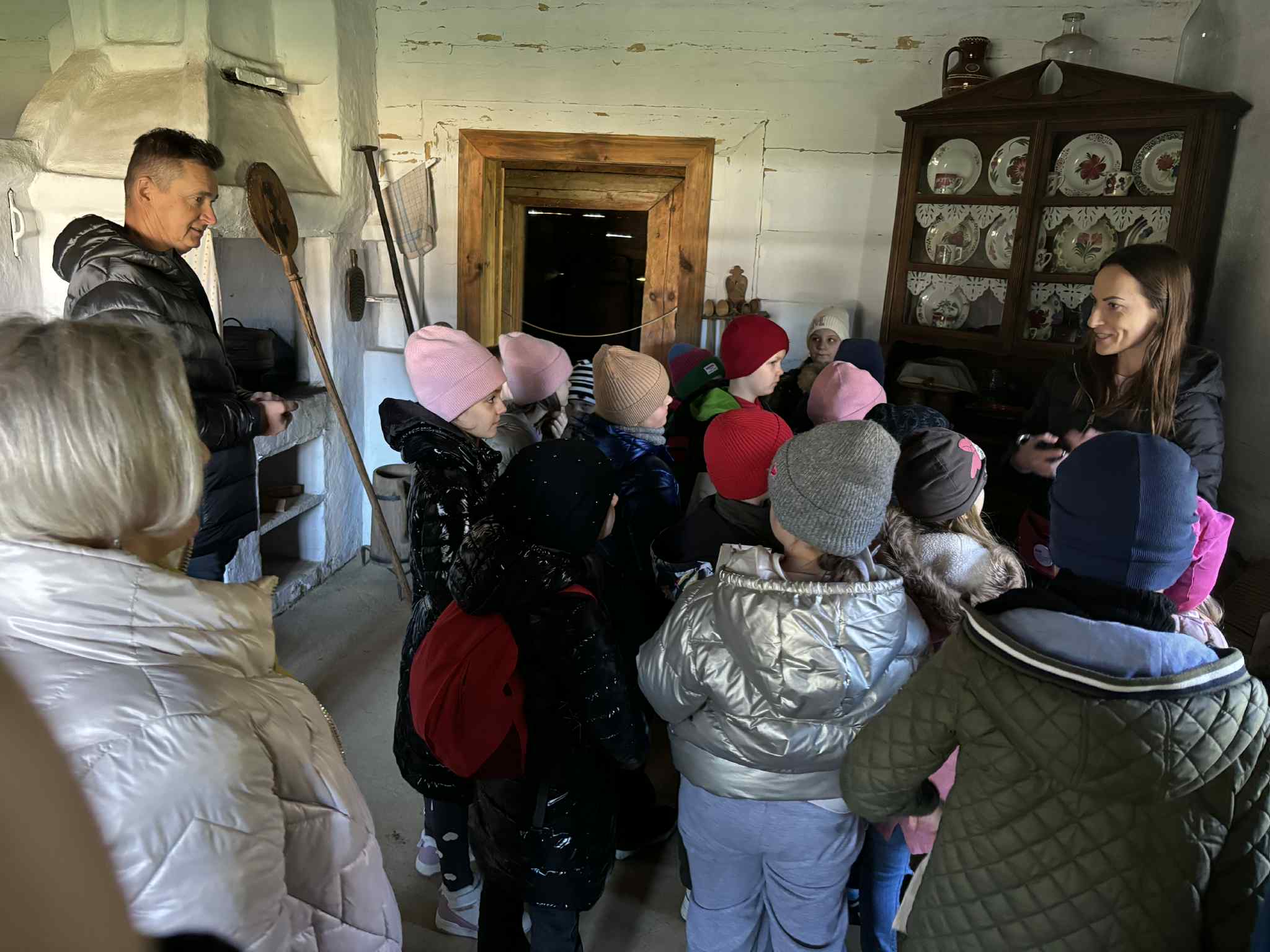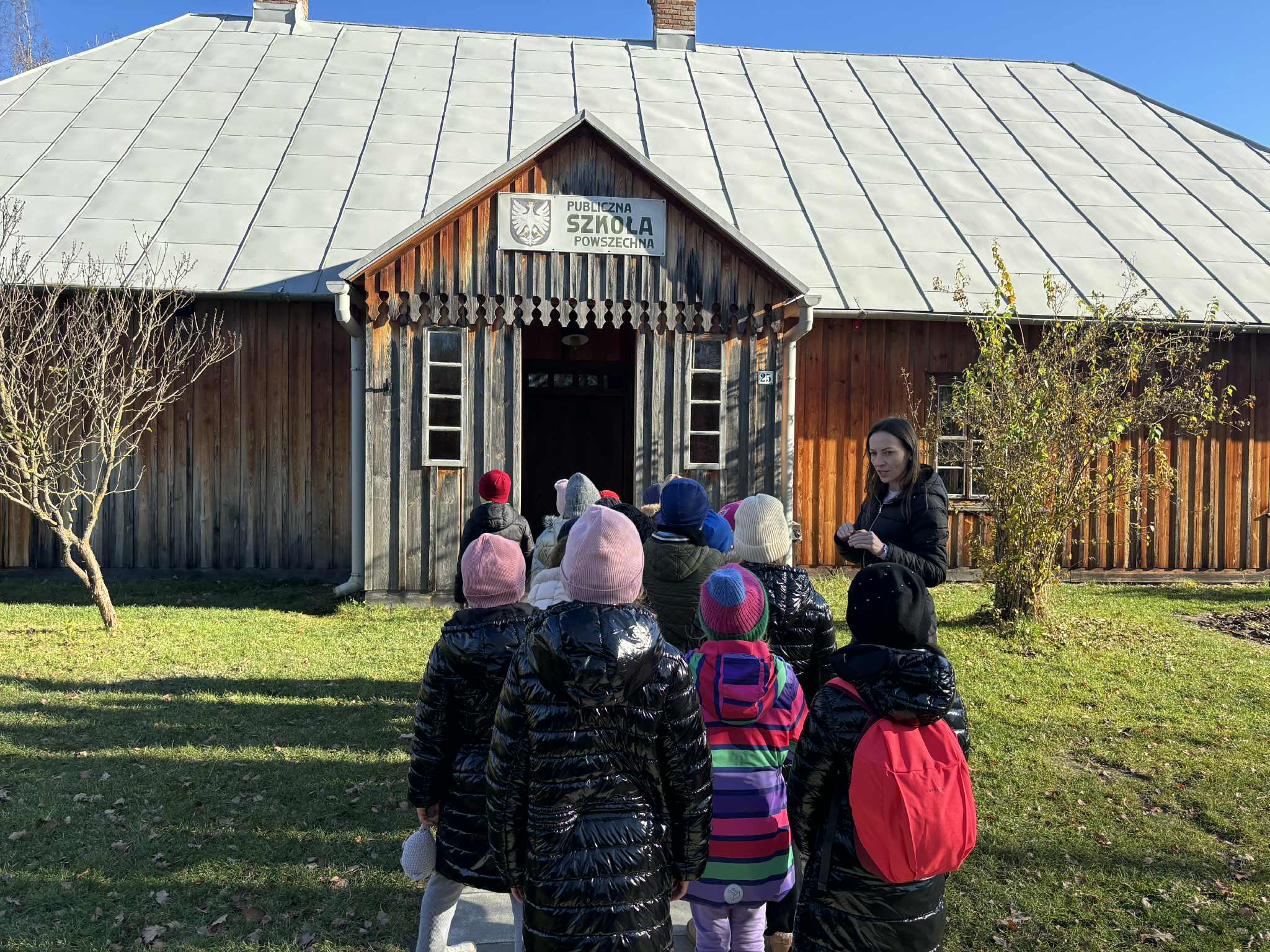 6 listopada 2025 r. uczniowie klasy II a odwiedzili Muzeum Kultury Ludowej w Kolbuszowej. Klasa odbyła spacer z przewodnikiem po skansenie. Dzieci zobaczyły stare chałupy wraz ze sprzętem domowym, zabytkowy kościół z Rzochowa, dwór z Brzezin oraz budynek dawnej szkoły. Dowiedziały się, jak kiedyś wyposażona była klasa, jak wyglądały piórniki i tornistry oraz w jaki sposób prowadzono lekcje. Zapoznały się również ze sposobami radzenia sobie z niesfornymi uczniami. Największą atrakcją okazało się klęczenie na grochu – wielu chciało spróbować, jak to jest…