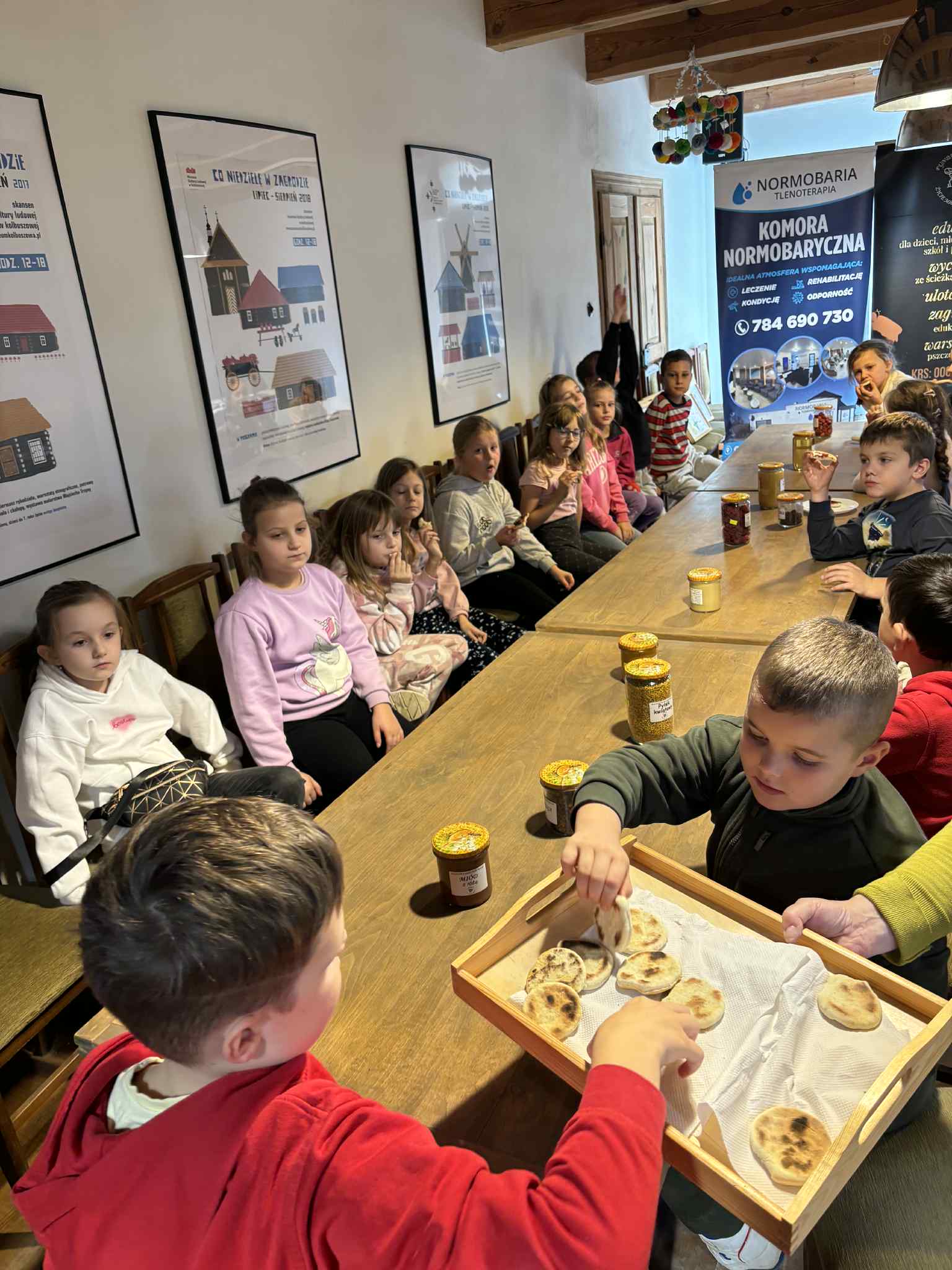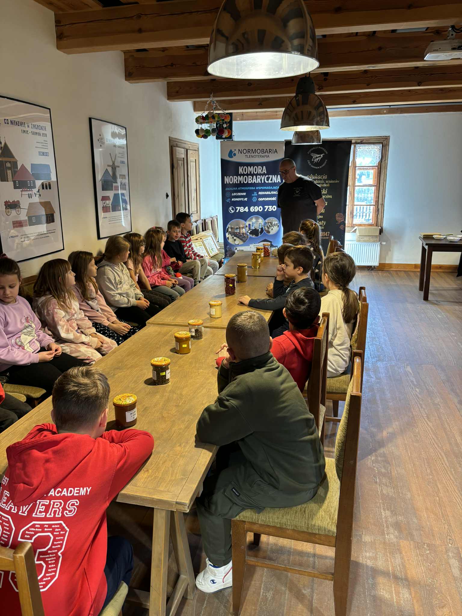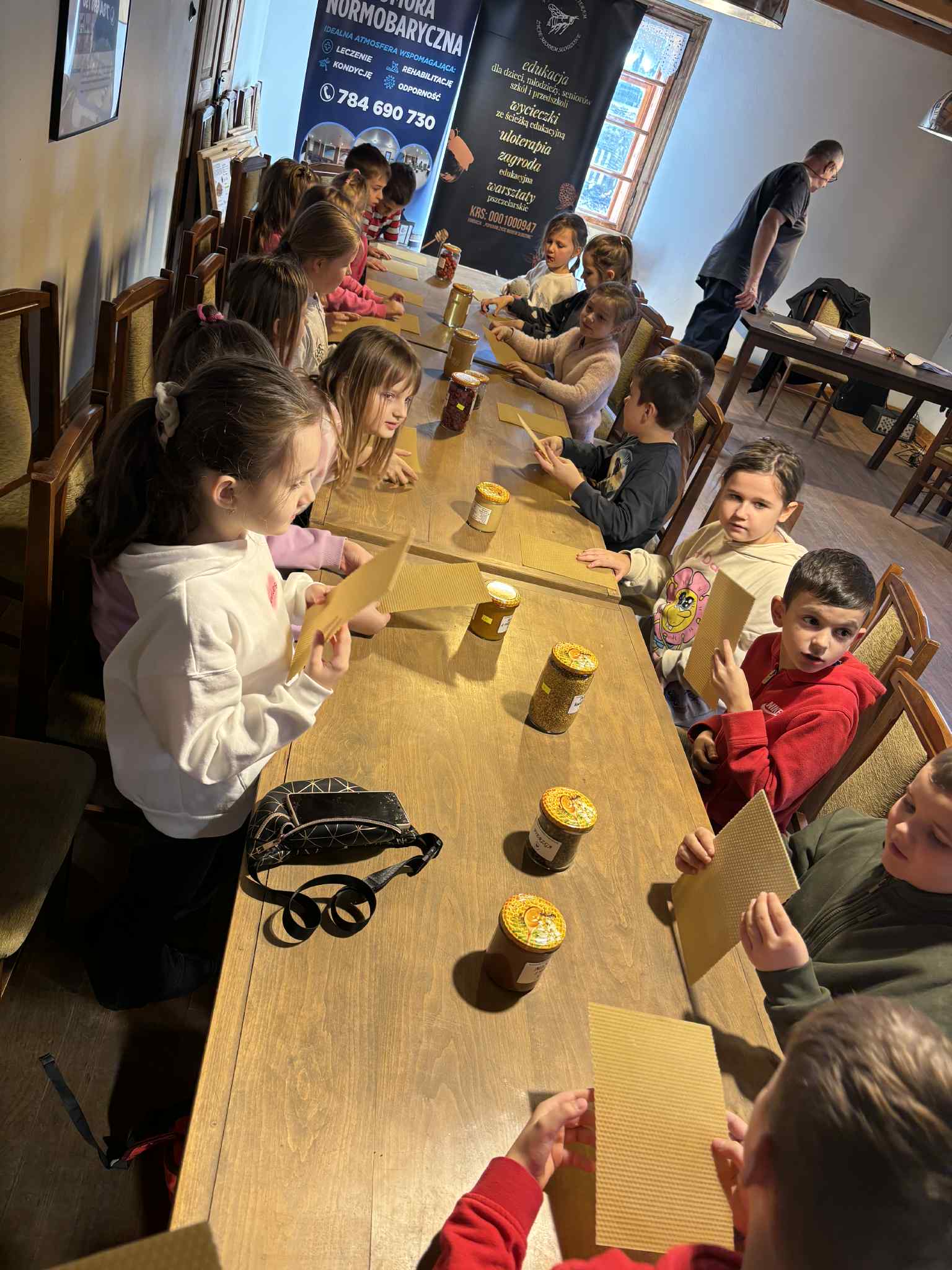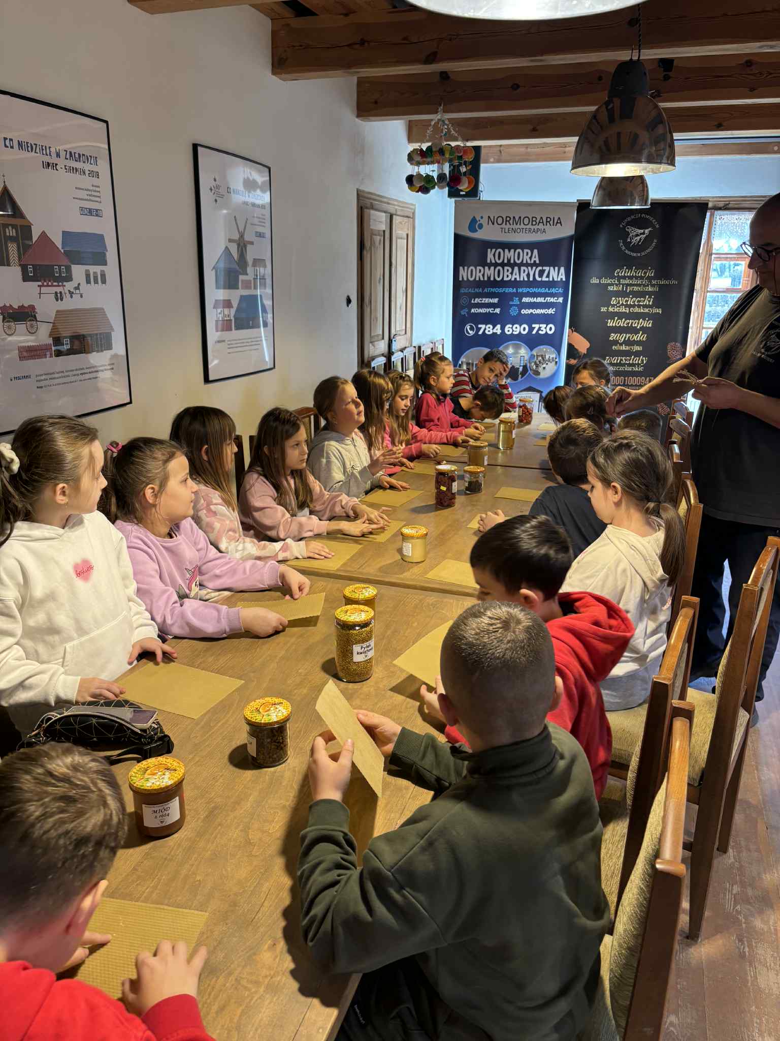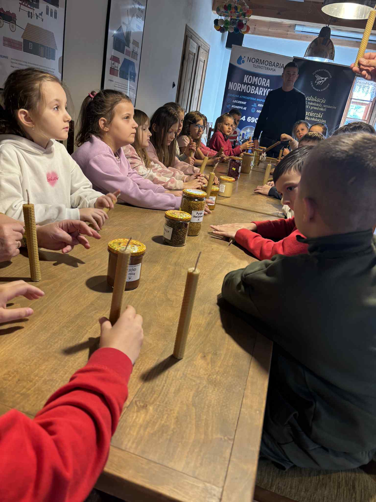 Atrakcją były także warsztaty z pszczelarzem, podczas których uczniowie poszerzyli swoją wiedzę na temat życia i pracy pszczół 🐝🐝🐝 oraz ich roli w ekosystemie. W trakcie zajęć dzieci samodzielnie tworzyły świece z wosku pszczelego. Na zakończenie odbyła się degustacja proziaków z miodem.