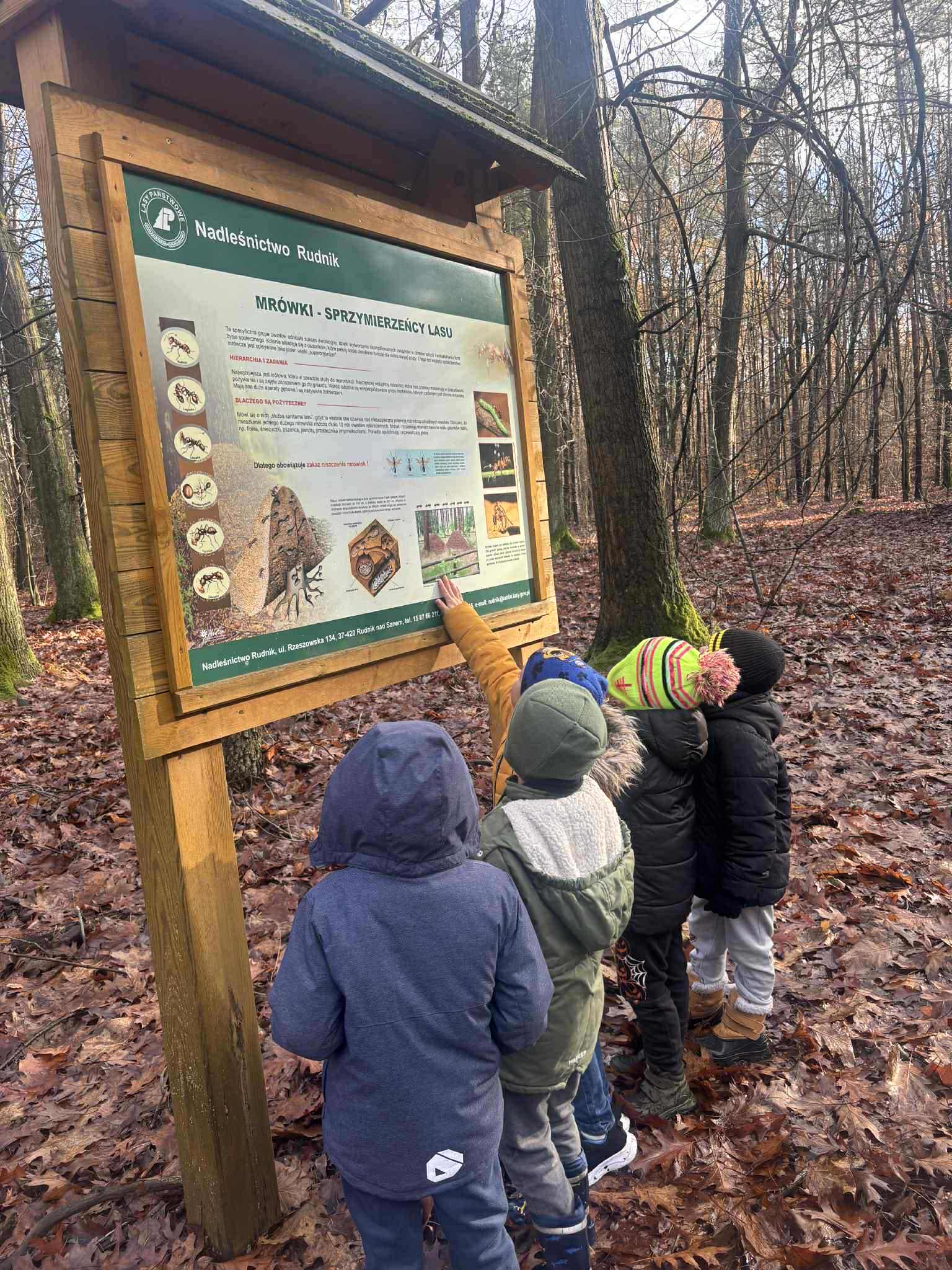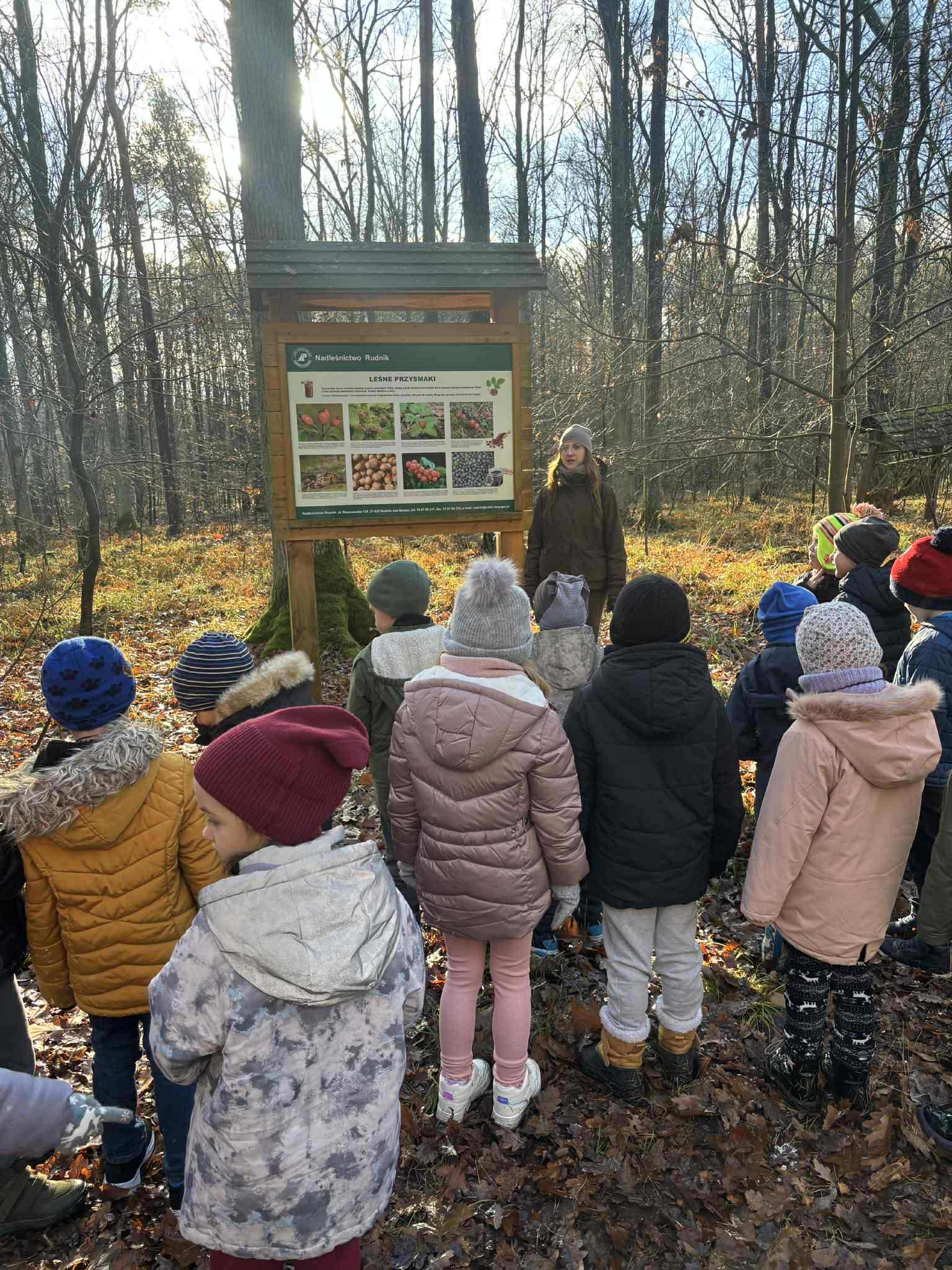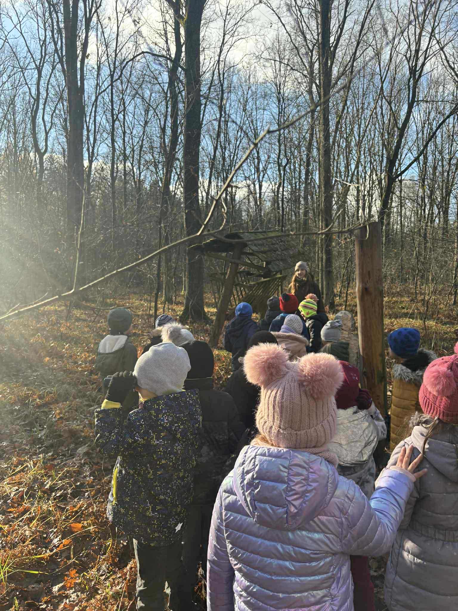 Dnia 18 listopada dzieci z oddziału przedszkolnego ,,B’’ wybrały się na wycieczkę do Nadleśnictwa Rudnik. Na miejscu dzieci spotkały się z panią podleśnik, która opowiedziała im o swojej pracy oraz o tym, jak należy zachowywać się podczas pobytu na terenach leśnych. Grupa wraz z przewodnikiem udała się na spacer po ścieżce edukacyjnej w Leśnictwie Zatyki. Podczas wędrówki przedszkolaki poznały ciekawostki dotyczące środowiska leśnego. Spacer po lesie był doskonałą okazją do utrwalenia wiedzy o przyrodzie oraz do rozwijania umiejętności obserwacji. Na zakończenie spaceru na uczestników wycieczki czekała gorąca herbata oraz kiełbaska z rusztu. Atmosfera była radosna, a dzień pełen wrażeń. Przedszkolaki wróciły bogatsze o nową wiedzę i piękne wspomnienia.
