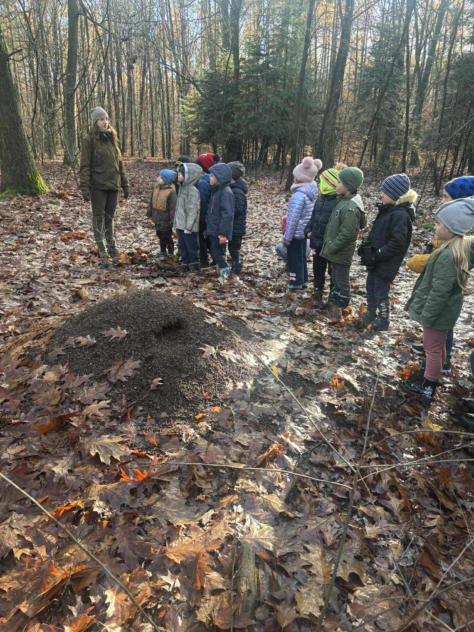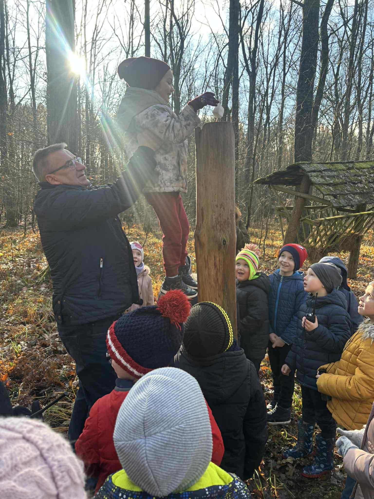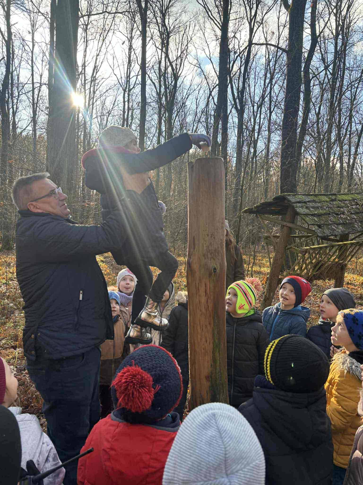 Dnia 18 listopada dzieci z oddziału przedszkolnego ,,B’’ wybrały się na wycieczkę do Nadleśnictwa Rudnik. Na miejscu dzieci spotkały się z panią podleśnik, która opowiedziała im o swojej pracy oraz o tym, jak należy zachowywać się podczas pobytu na terenach leśnych. Grupa wraz z przewodnikiem udała się na spacer po ścieżce edukacyjnej w Leśnictwie Zatyki. Podczas wędrówki przedszkolaki poznały ciekawostki dotyczące środowiska leśnego. Spacer po lesie był doskonałą okazją do utrwalenia wiedzy o przyrodzie oraz do rozwijania umiejętności obserwacji. Na zakończenie spaceru na uczestników wycieczki czekała gorąca herbata oraz kiełbaska z rusztu. Atmosfera była radosna, a dzień pełen wrażeń. Przedszkolaki wróciły bogatsze o nową wiedzę i piękne wspomnienia.